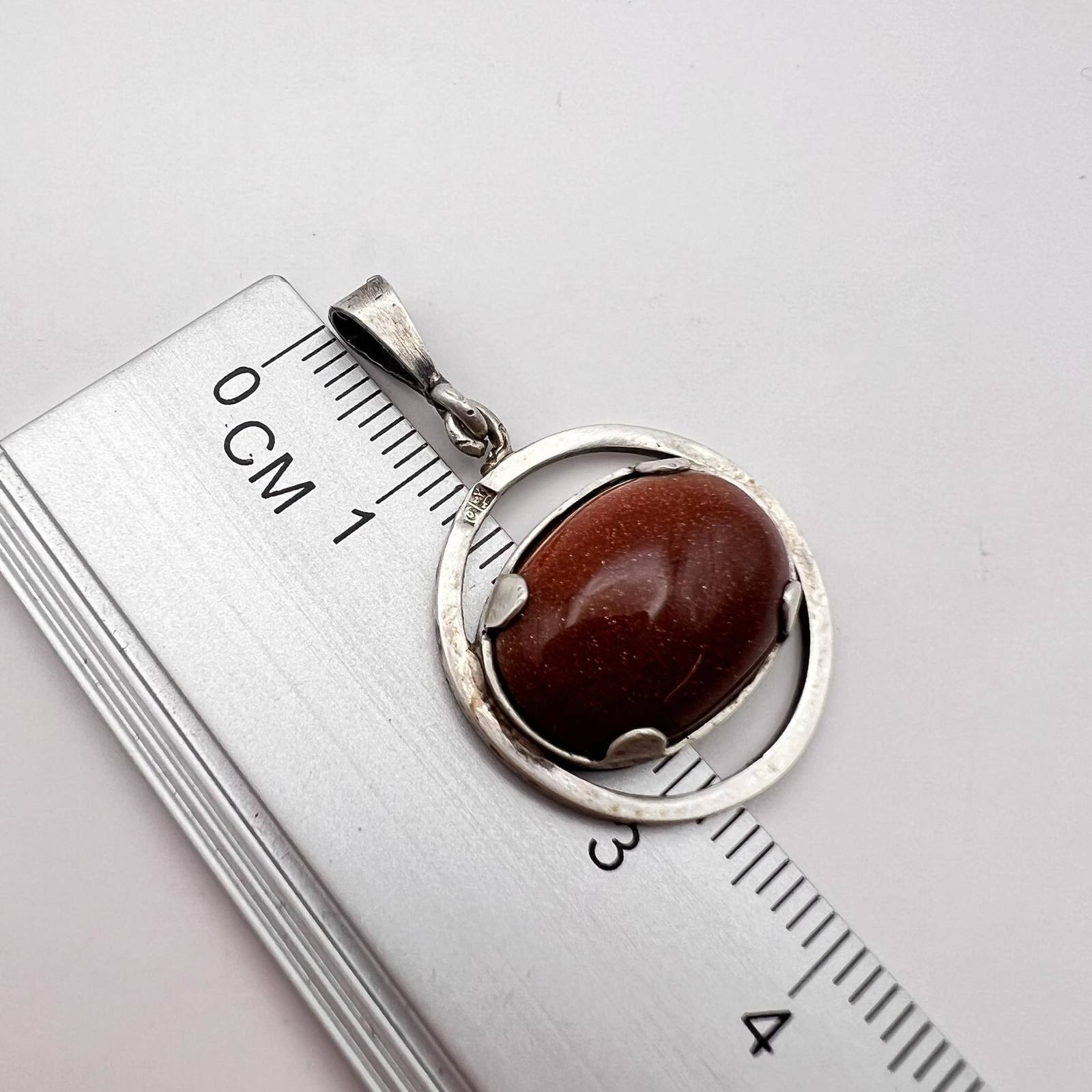 Vintage Sterling Silver 800 Women's Jewelry Pendant Aventurine Gemstone Signed