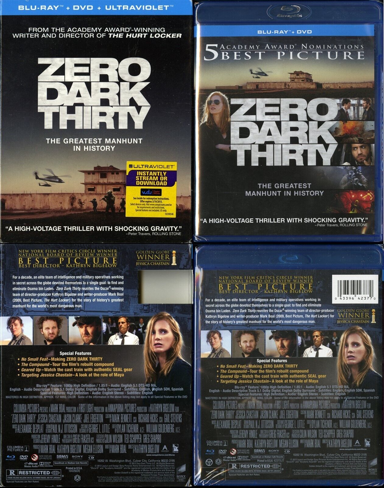 ZERO DARK THIRTY BLU-RAY JESSICA CHANDLER 2 DISCS SONY VIDEO SLIPCOVER NEW