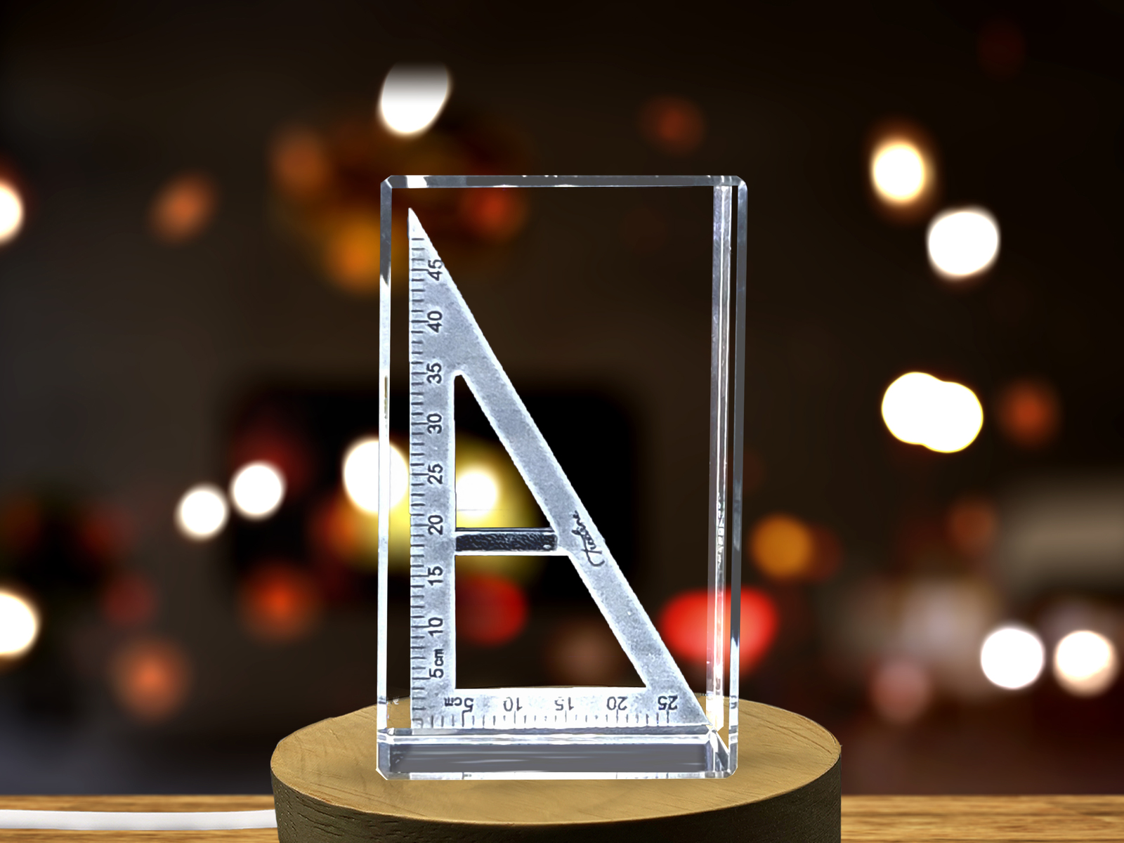 Introducing a unique decorative art piece perfect for the engineer, architect or mathematician - a laser engraved crystal set square sculpture.
