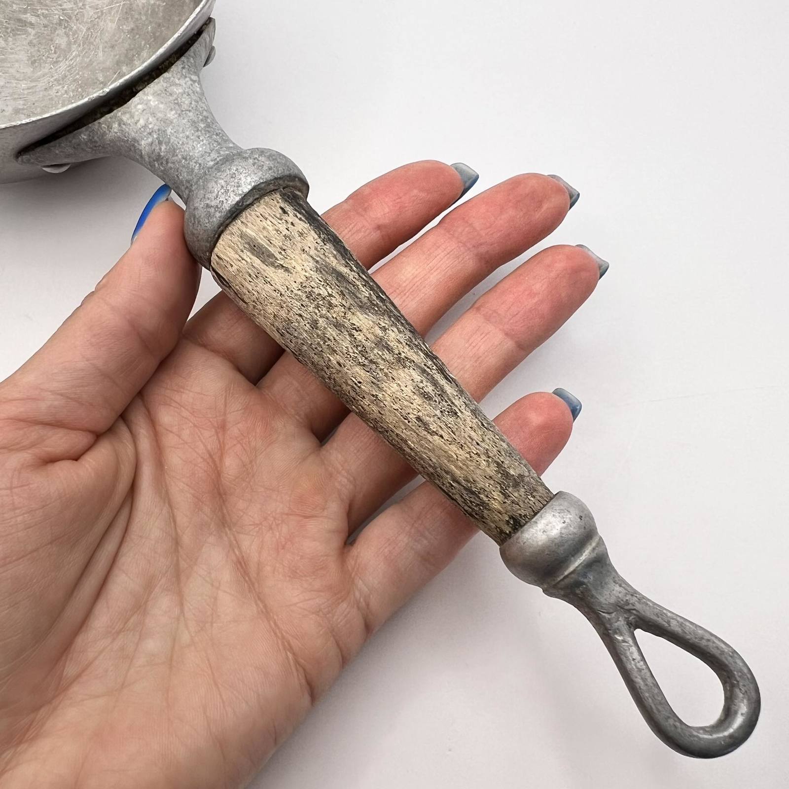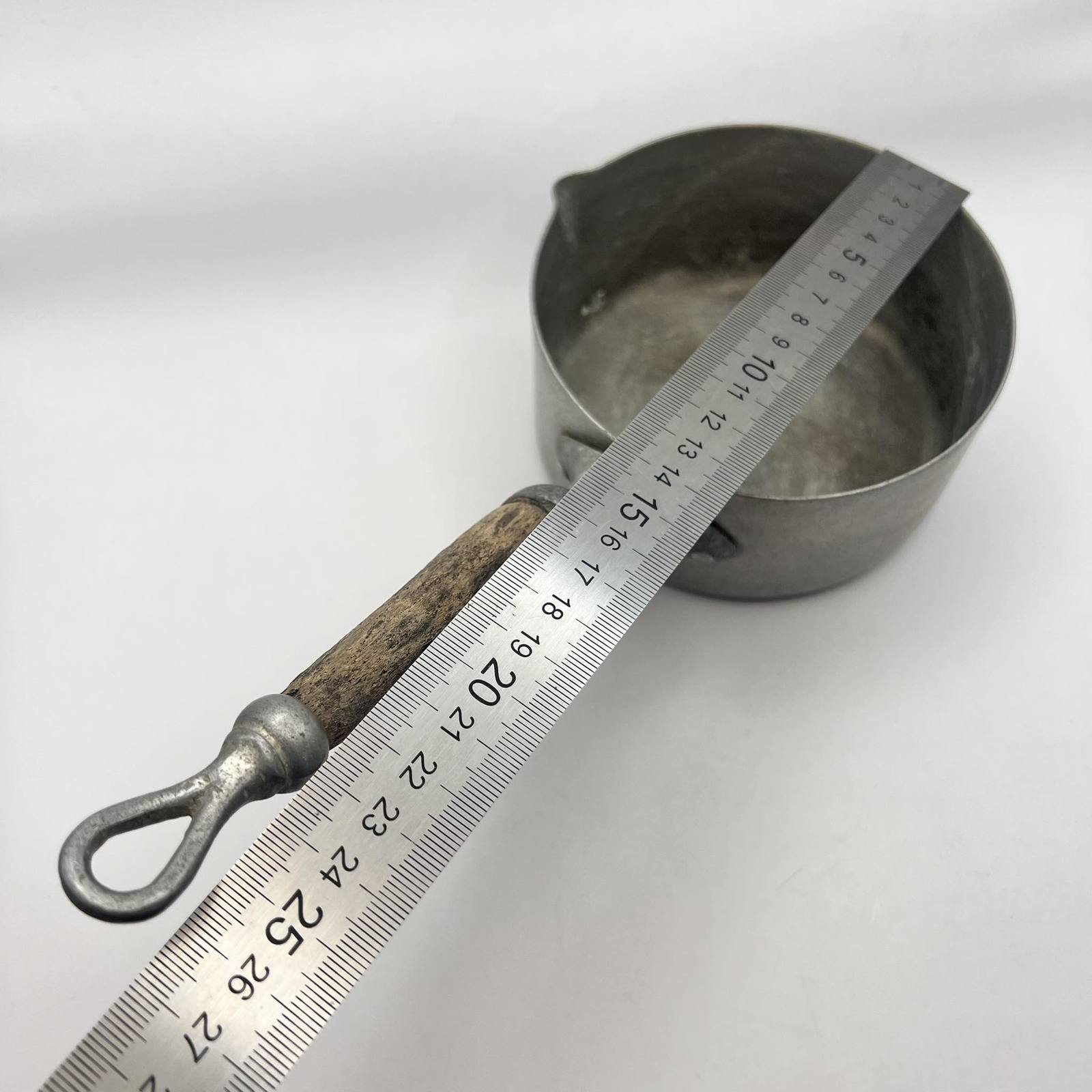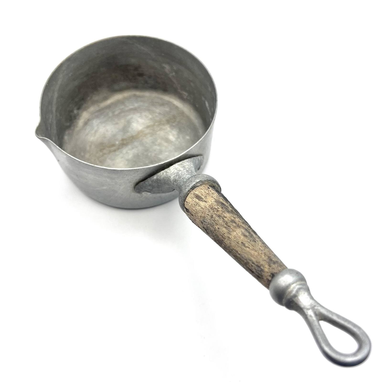 Unusual Rare Collectible Cookware Scoop Sauce Pan Pot Aluminum Wood Handle Marked
