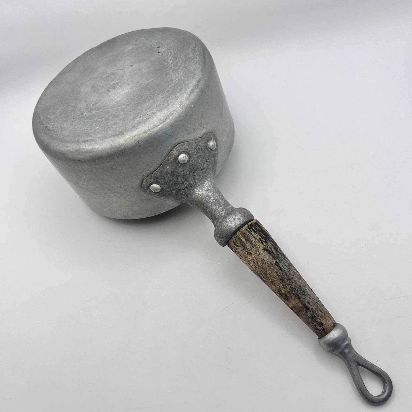 Vintage Collectible Cookware Scoop Sauce Pan Pot Aluminum Wood Handle Marked