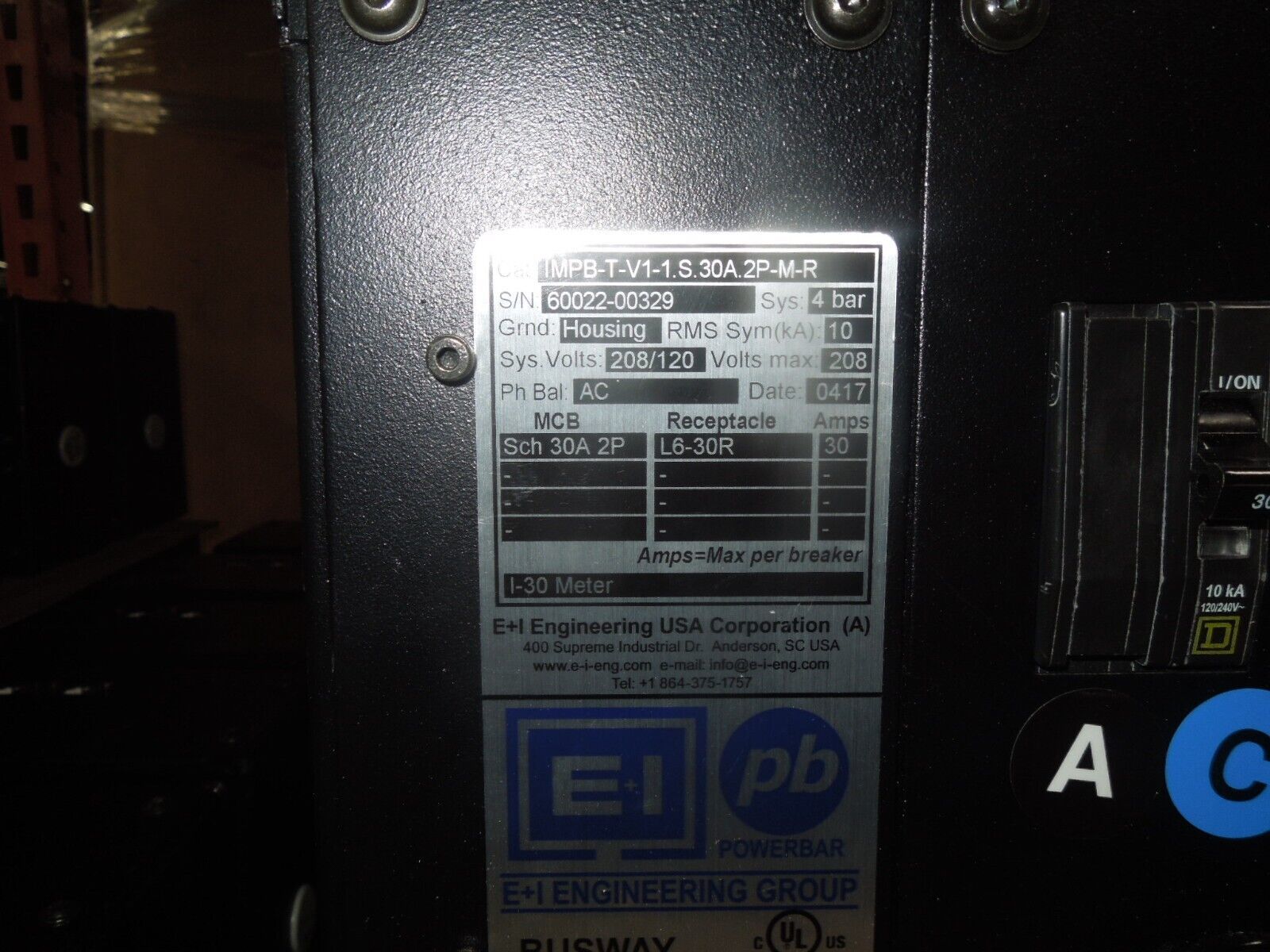 E+I Engineering Group iMPB Tapoff IMPB-T-V1-1.S.30A.2P-M-R 30A 2p 208/120V AC