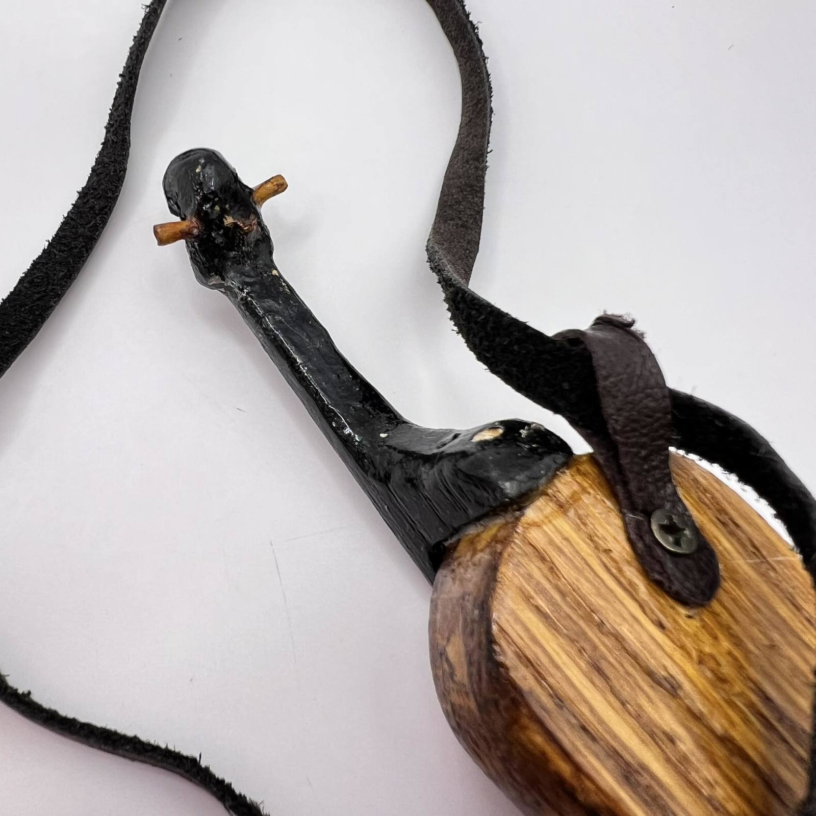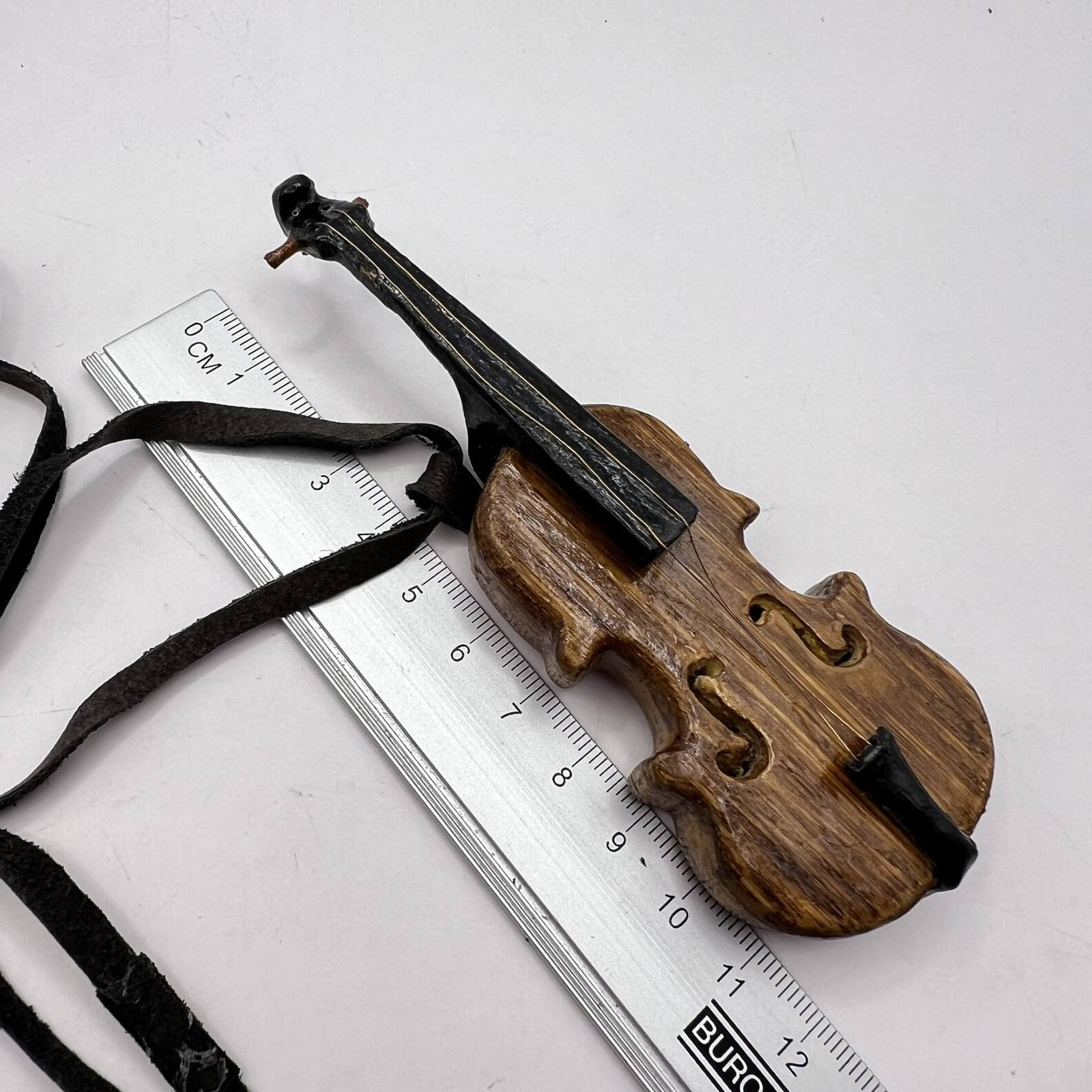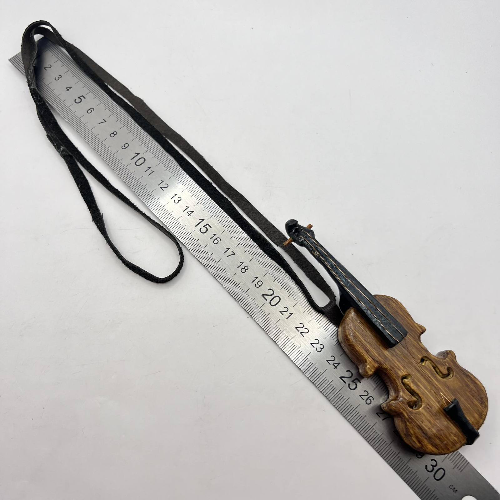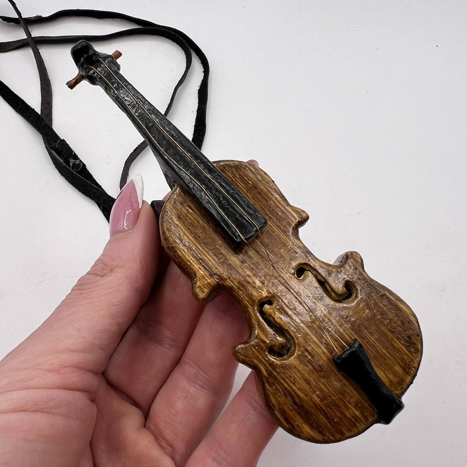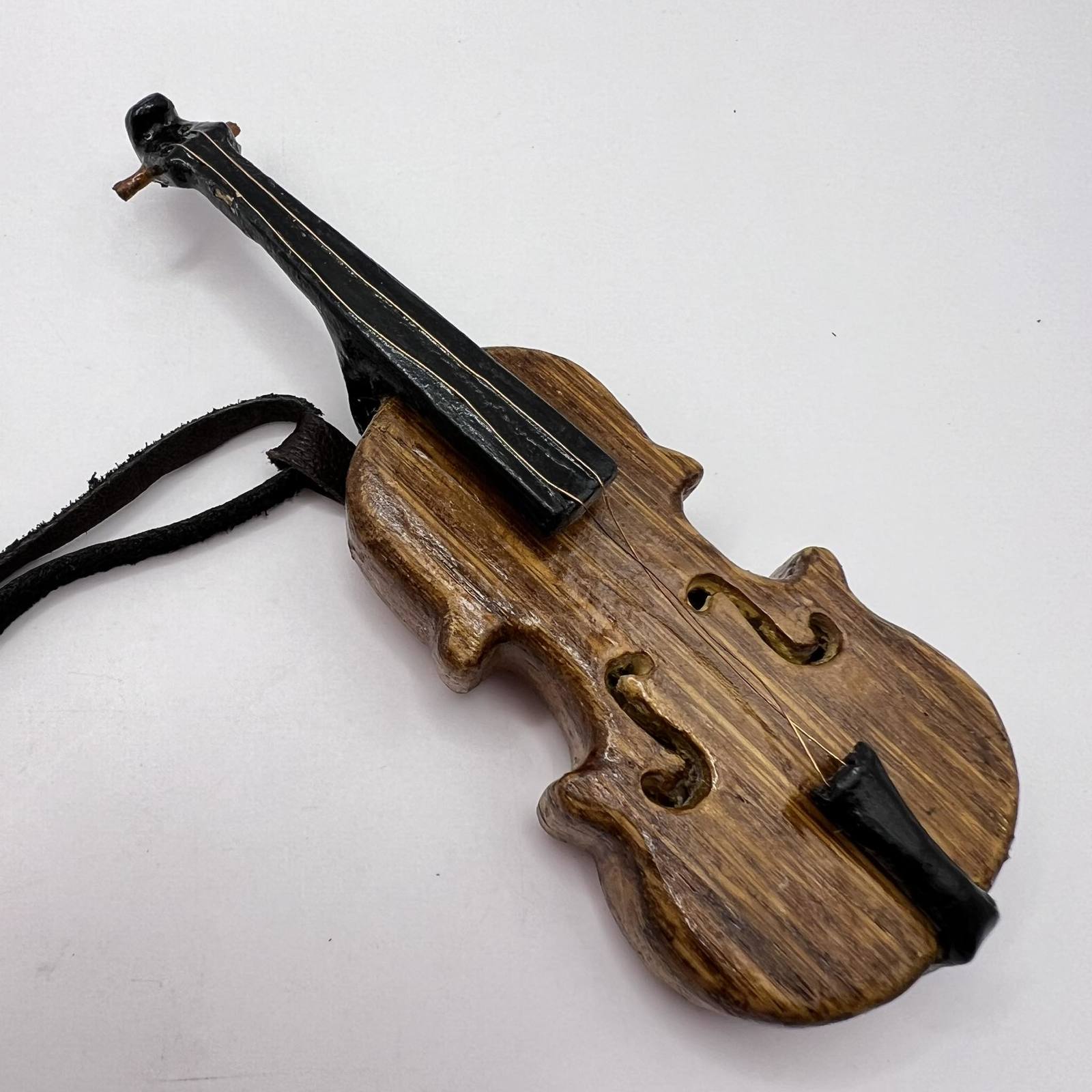 Unusual Vintage Handmade Wood Women's Mens Jewelry Necklace Pendant Violin Lace Leather