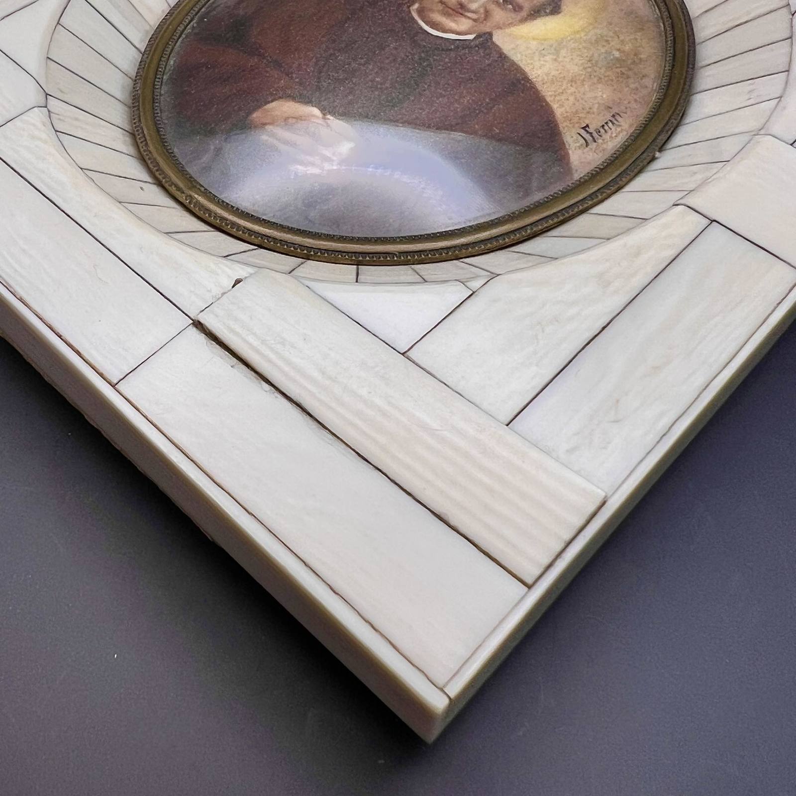 frame on the portrait, signature of the author Ferrari.