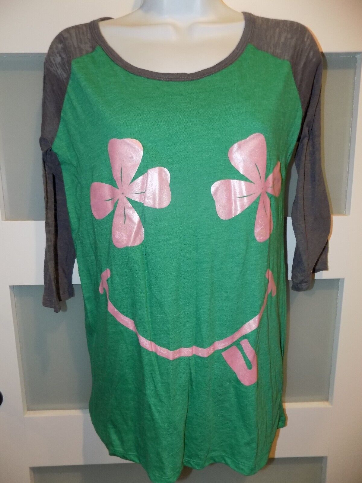 L.O.L Vintage Green Four Leaf Clover Smiley Face Size M Women's NEW
