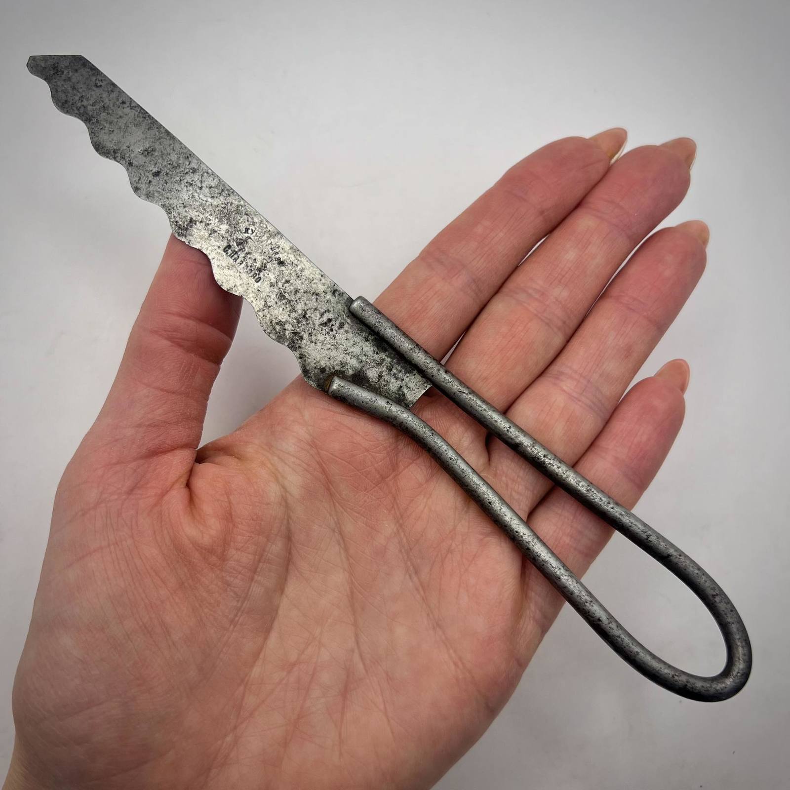Unusual Antique Imperial Table Bread Knife Hand Made Metal Marked Pavlovo