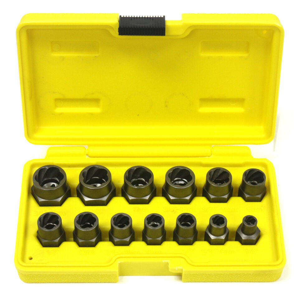 13pc Metric SAE 3/8" Drive Bolt Extractor Twist Socket Set Stud Nut 1/4" - 19mm