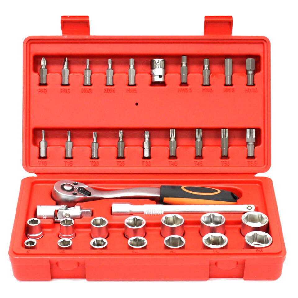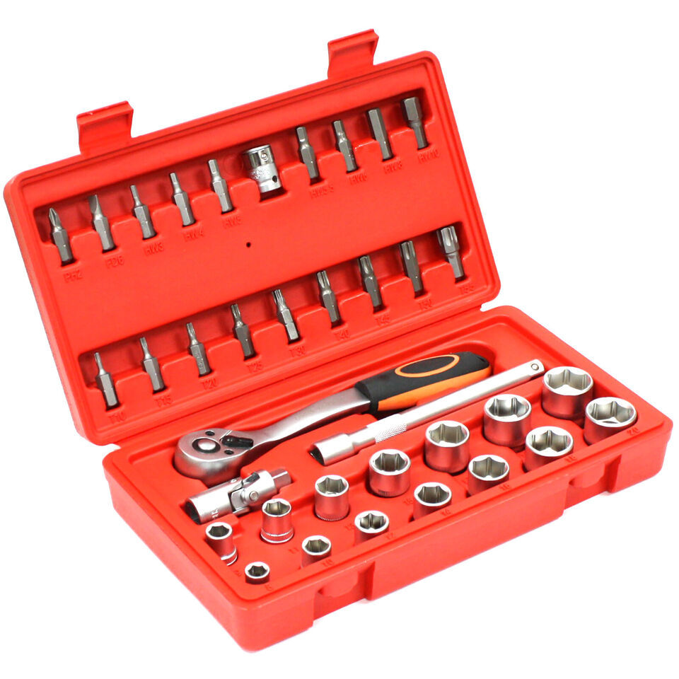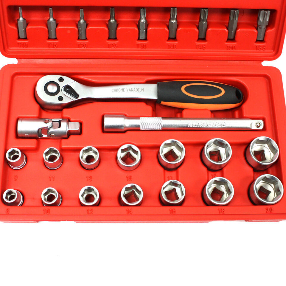 36 pcs 3/8" Drive Metric Socket Bit Set Star Hex Ratchet Wrench Bits Adapter