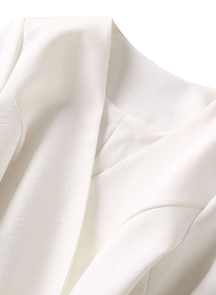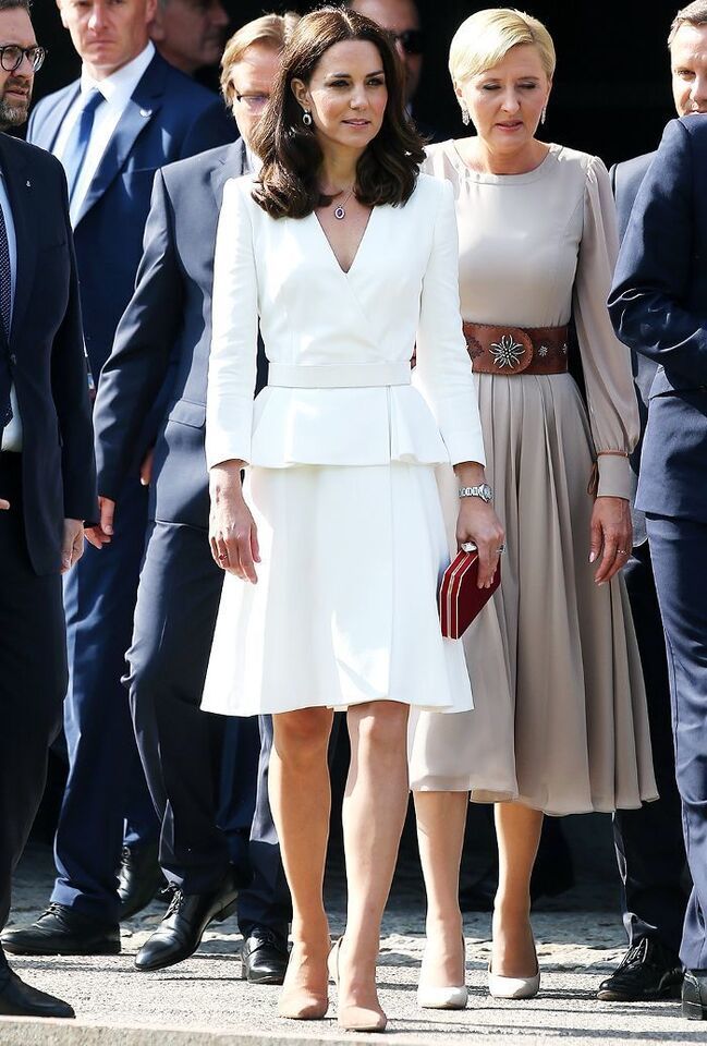 Kate Middleton Inspired Mock Two-piece Wrap Over Neckline Off-White Peplum Dress