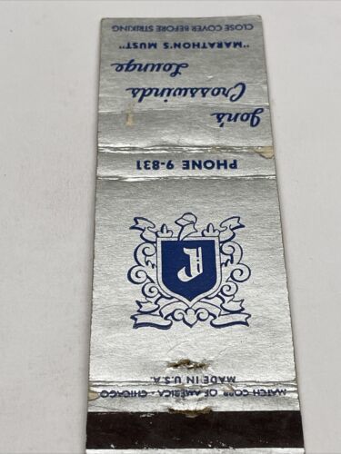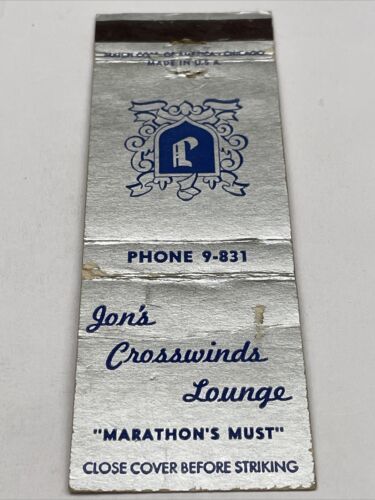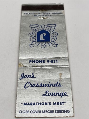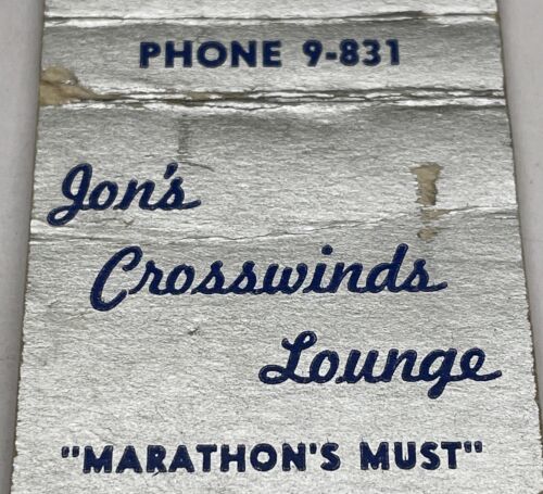 Matchbook Cover Jon’s Crosswinds Lounge Marathon gmg. Unstruck Foxing