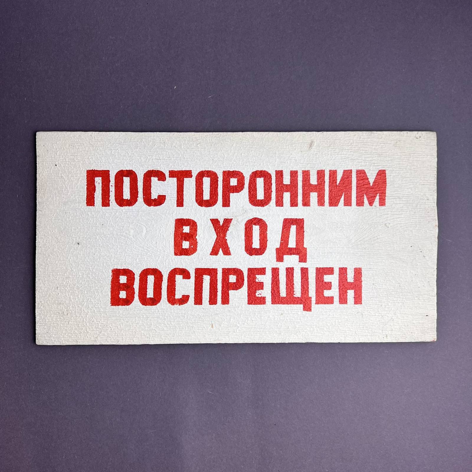 Unusual Rare Vintage USSR Soviet Wall Wooden Sign "Strangers Prohibited Entrance"