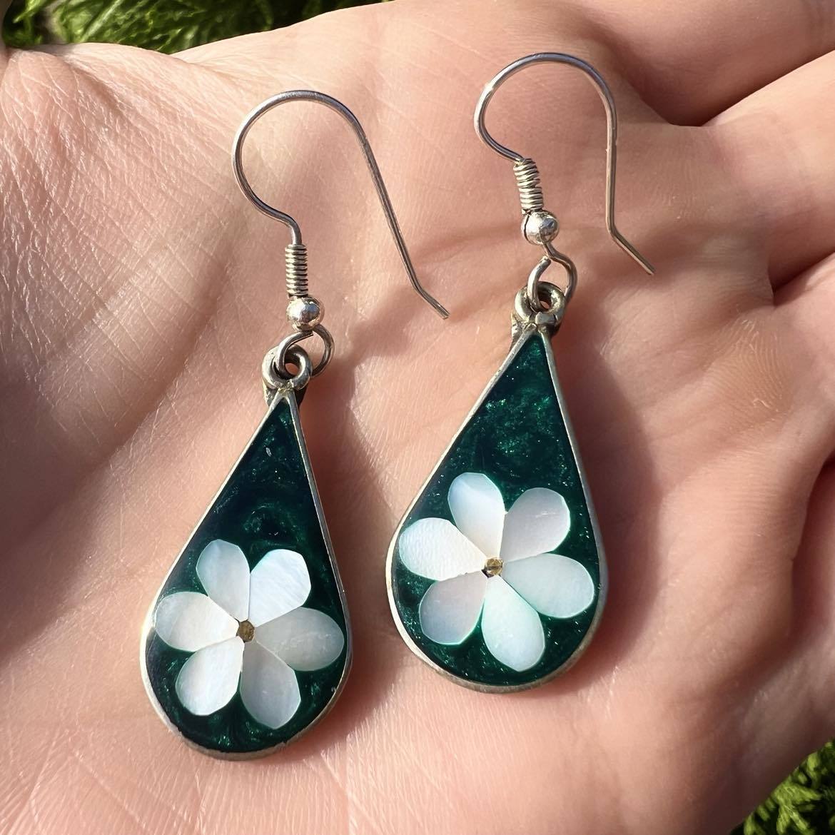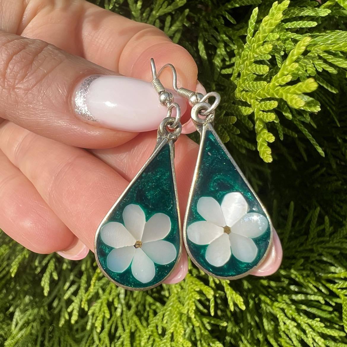 Beautiful Vintage Jewelry Sterling Silver 925 Women Stud Earrings Shell Nacre Mexico 3.3 gr
