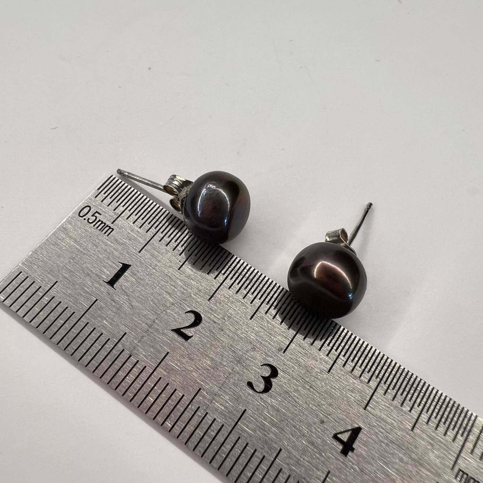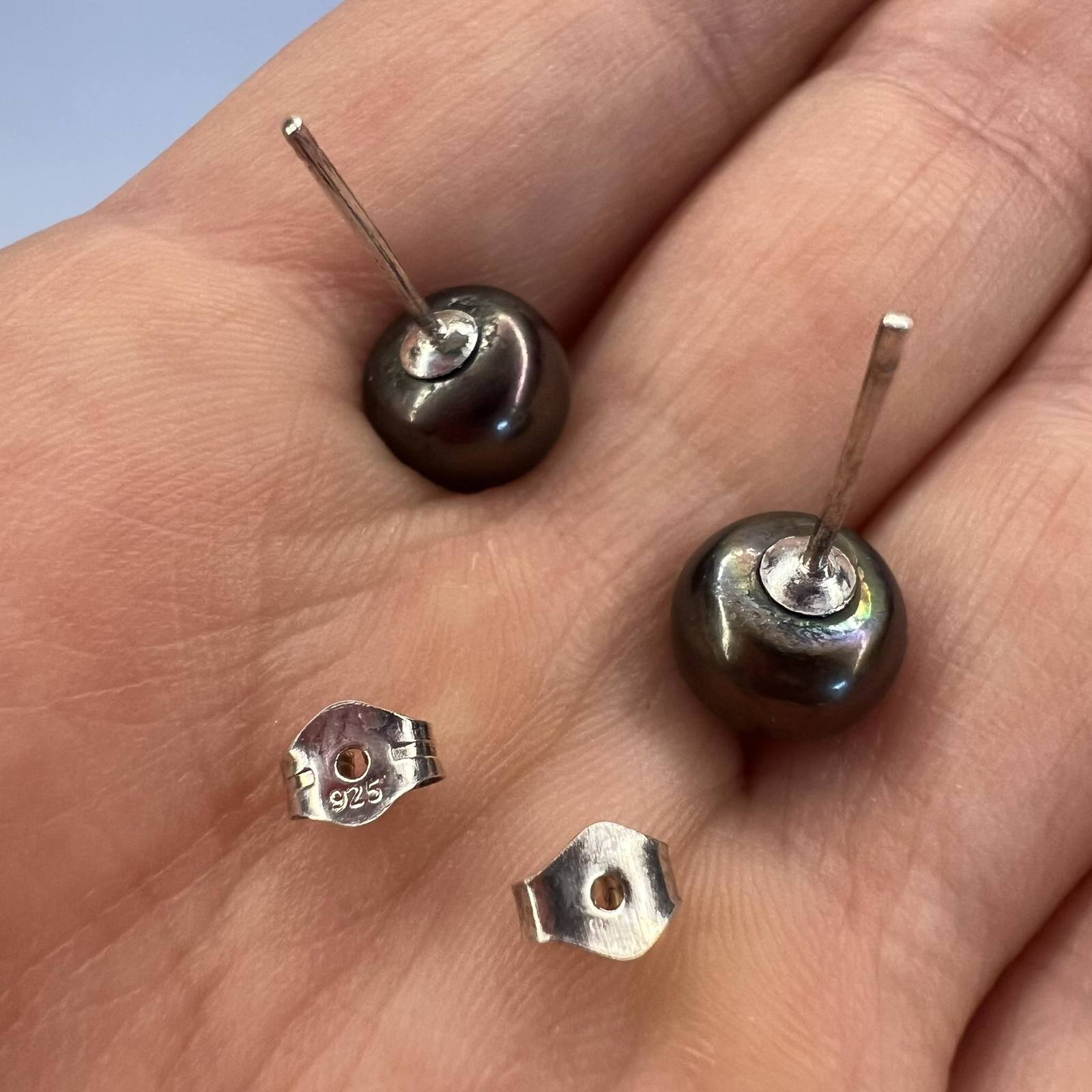 Beautiful Vintage Sterling Silver 925 Women's Jewelry Stud Earrings Black Pearl Marked