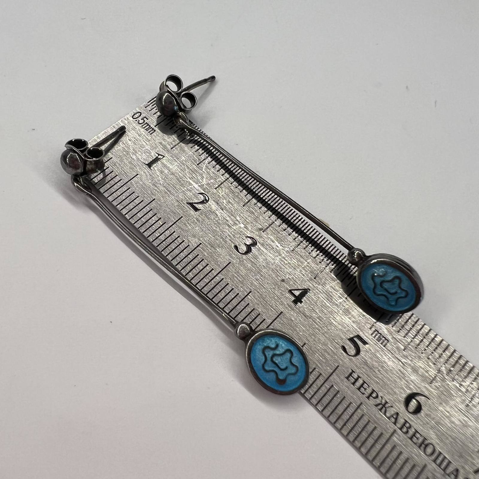 Long Vintage Jewelry Sterling Silver 925 Women's Stud Earrings Blue Enamel 3 gr