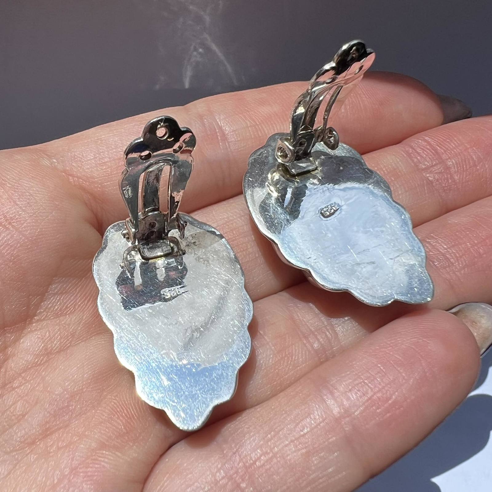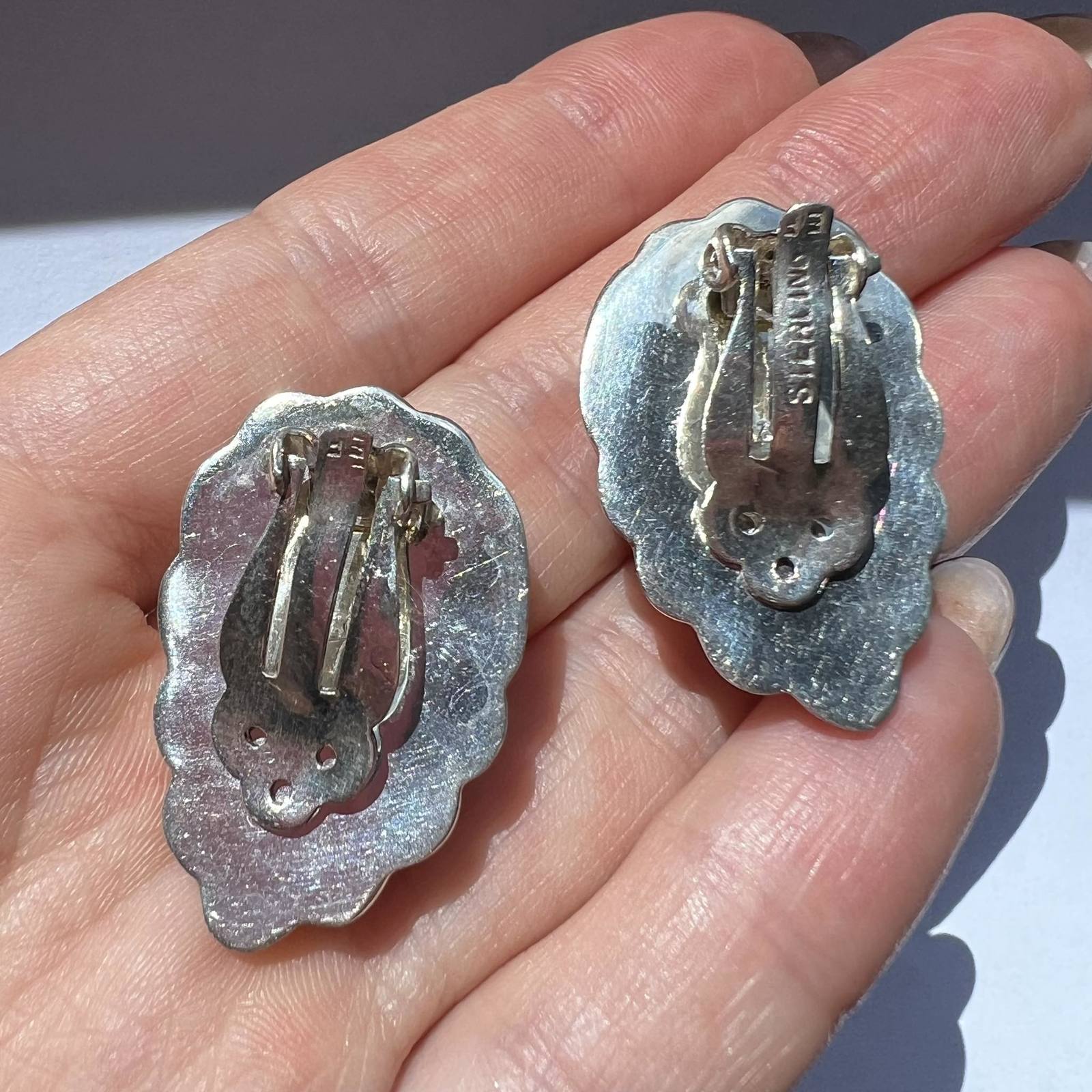 Fine Massive Vintage Sterling Silver 925 Women's Jewelry Earrings Clips Signed