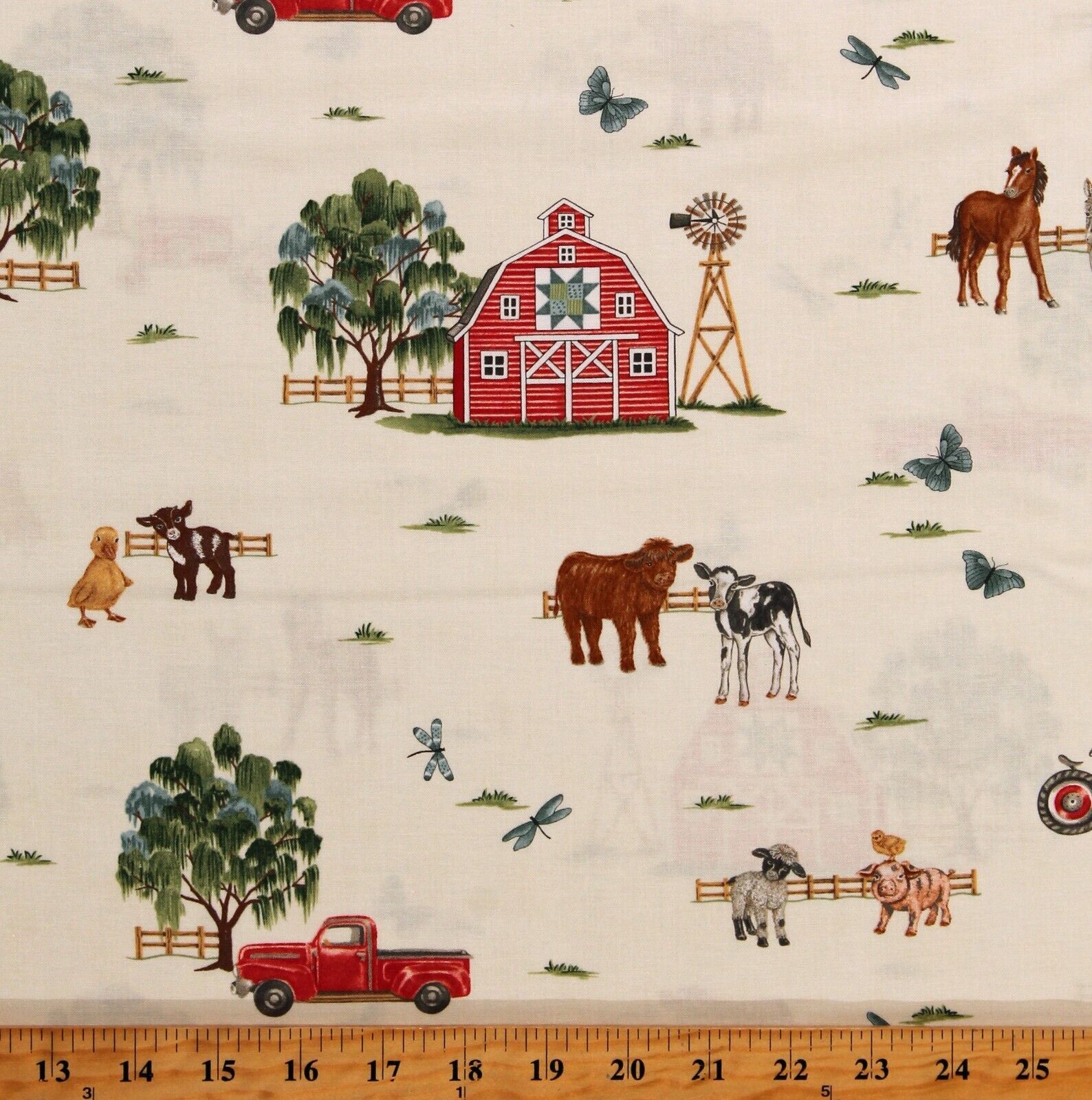 Cotton Willows Farm Deb Strain Farm Animals Fabric Print by the Yard D363.54
