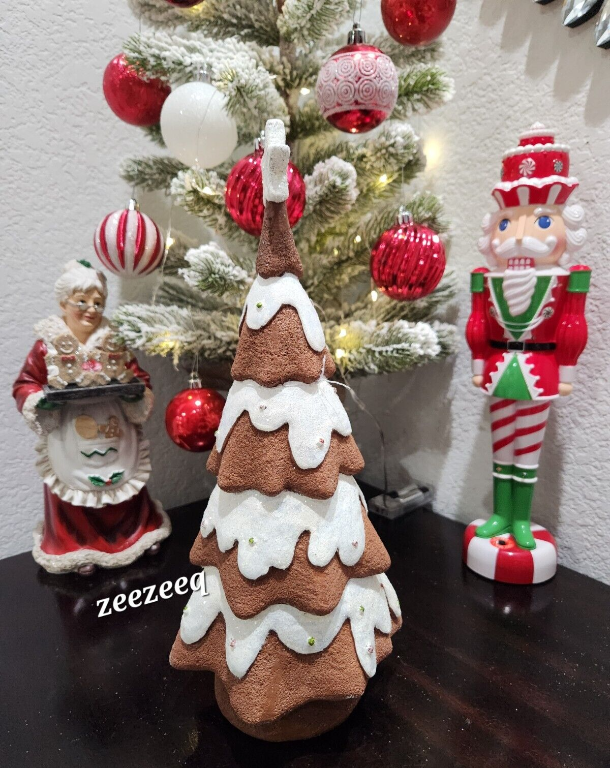 Up for sale we have this adorable gingerbread candy tree for your tabletop decor. The tree has lots of candy and glitter. It's sooo cute! It stands approx 12.25" tall. NEW. I have many gingerbread decor in my store. Background items are available in my store. New
