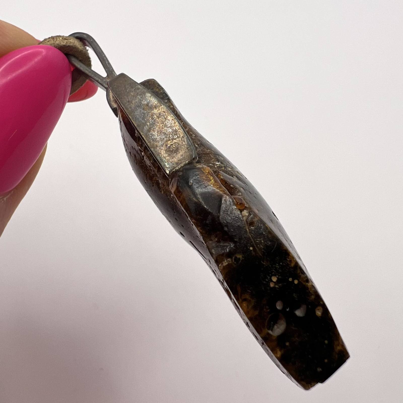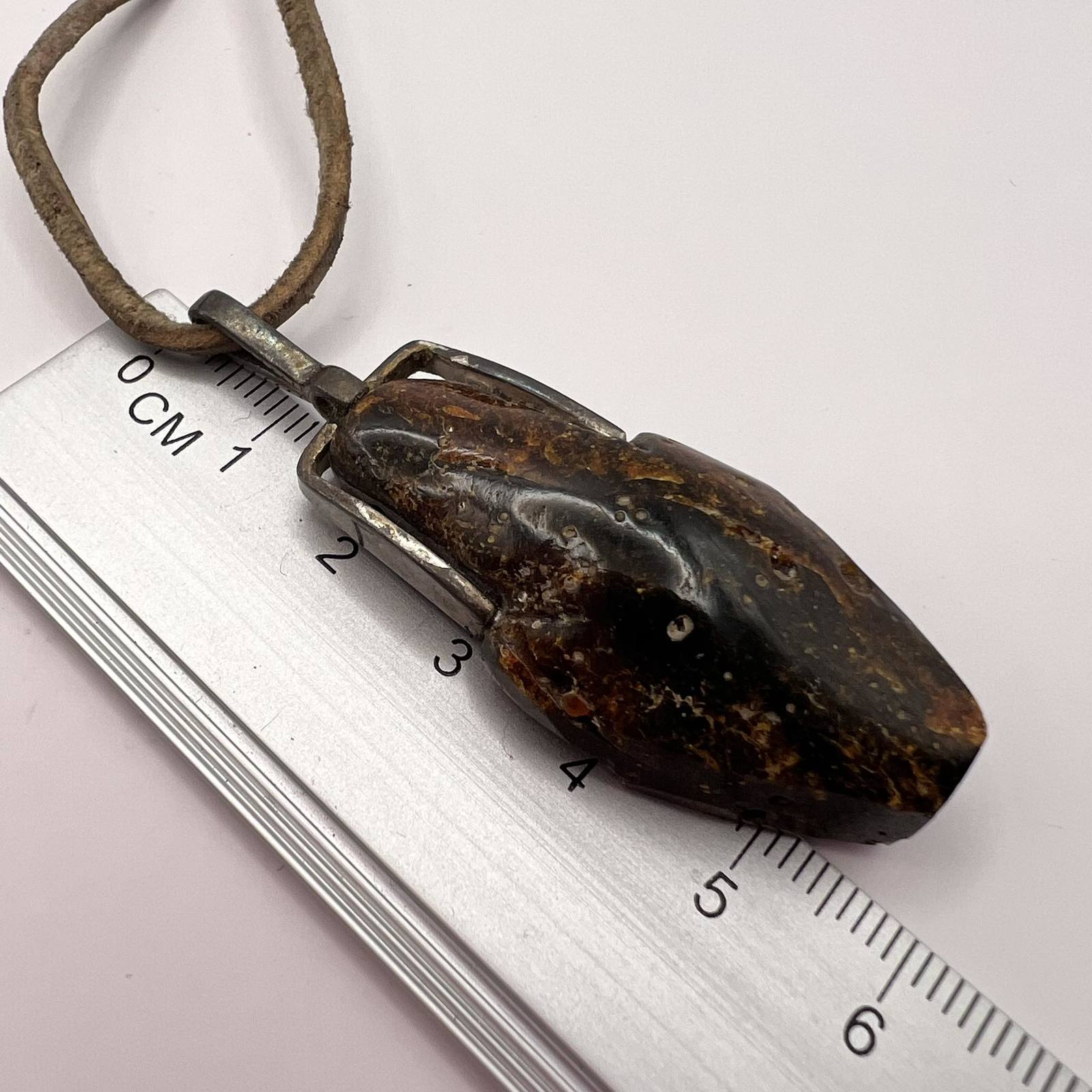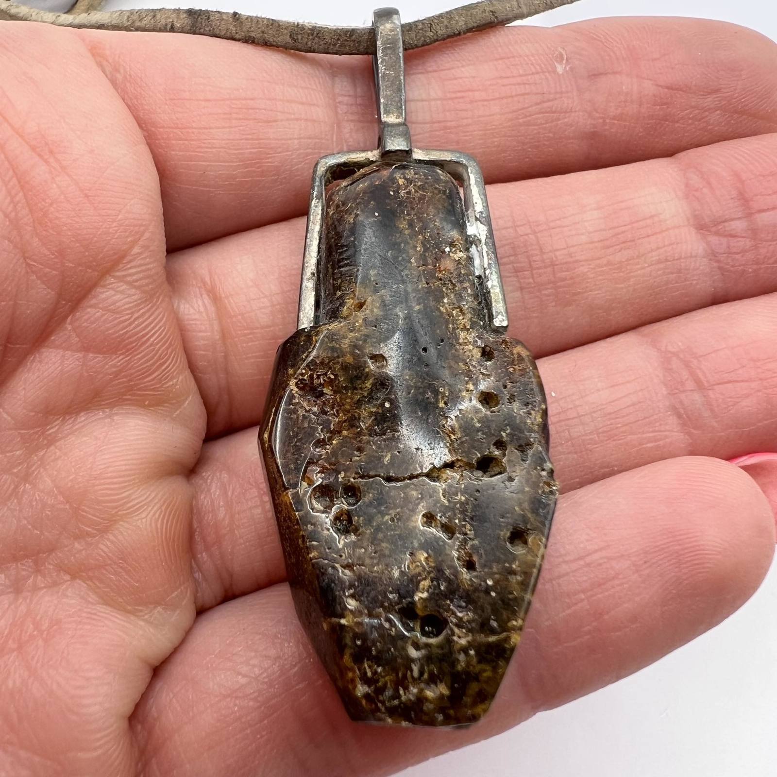Unusual Natural Baltic Amber Rare Vintage Sterling Silver Pendant Black Leather Necklace