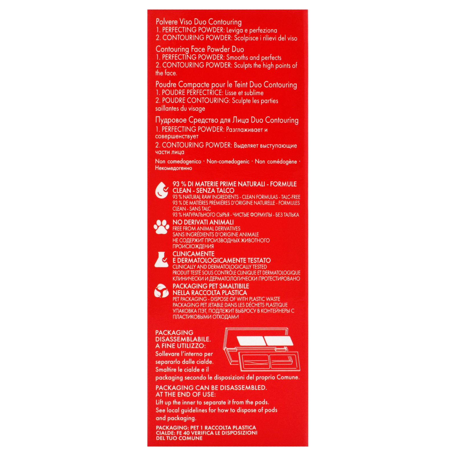 The new tool that makes adding dimension to your face easy. naturally highlights the facial features thanks to its extremely blendable texture. This palette makes it incredibly easy to create the play of light and shadow that will add definition to the face.
