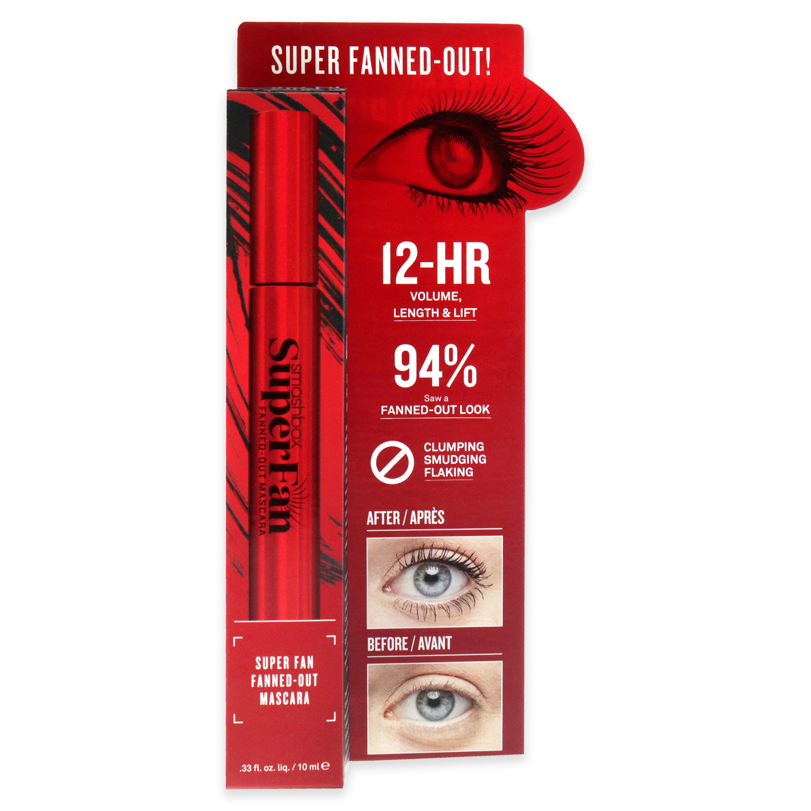 This lengthening mascara gives you modern, fanned-out volume. Get 12-hour length, lift and volume without any heaviness or clumping. Get faster volume by coating the top of lashes first, then sweep up from underneath. Actress, comedian and YouTube star Lilly Singh (@iisuperwomanii) is the star of Smashboxs Super Fan campaign.