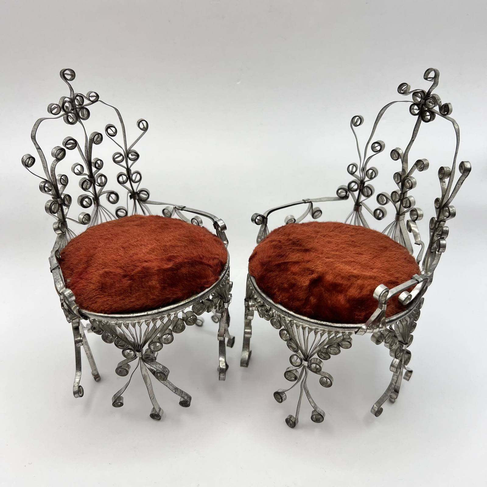 1991 Vintage USSR Kids Puppets Tin Plush Set Kitchen Furniture Table 2 Chairs Hand Made Marked