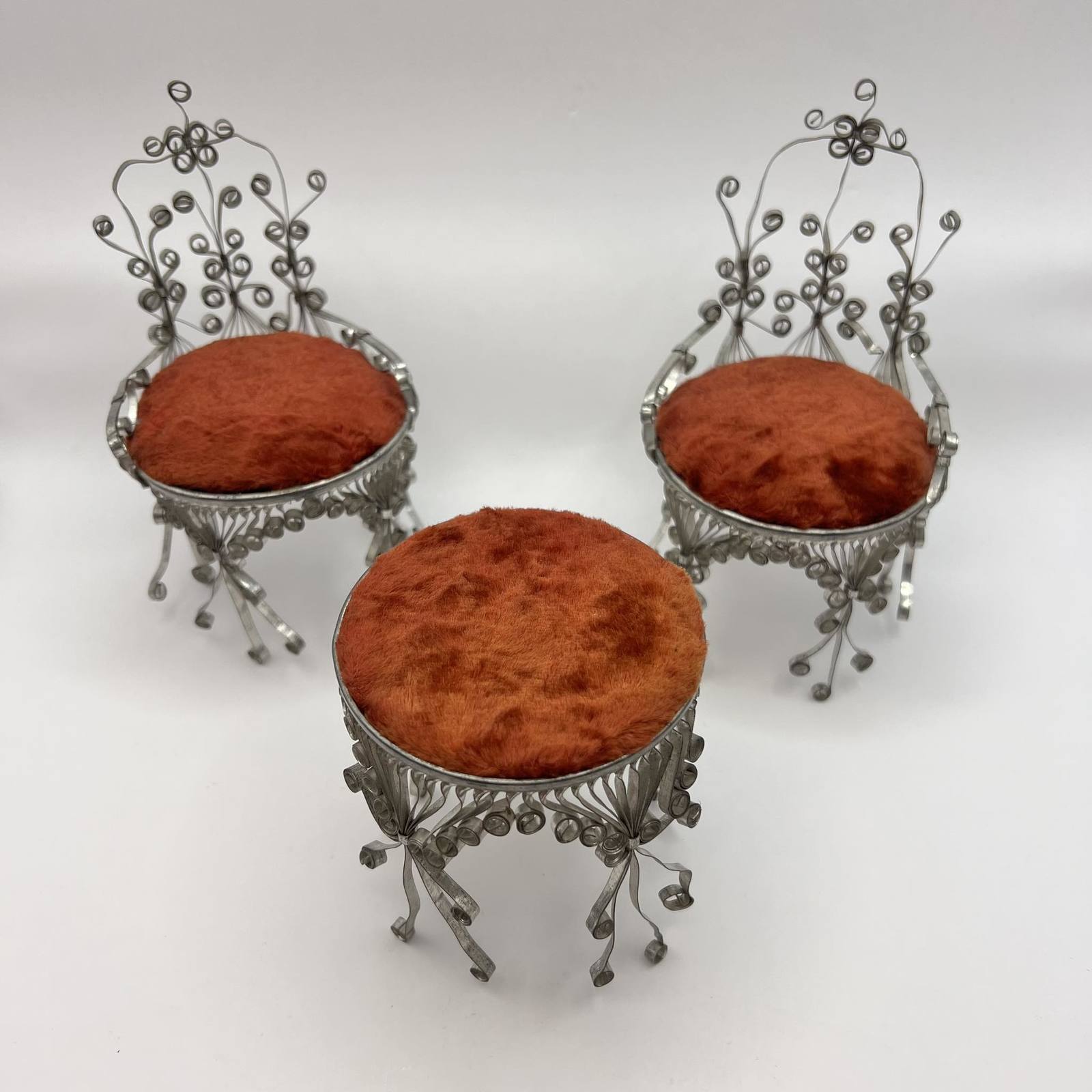 Unusual Vintage USSR Kids Puppets Tin Plush Set Kitchen Furniture Table 2 Chairs Marked