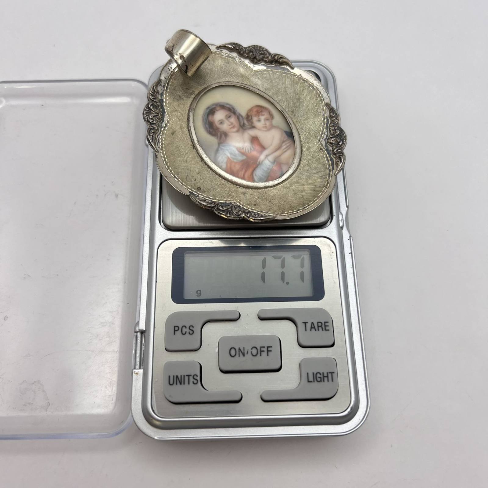 Italy, 925 silver. In the center the image of a religious scene of the Virgin Mary with Jesus,