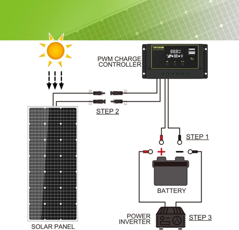 Widely applied to off-grid 12/24 Volt battery charging system and a variety of DC applications, including caravan, RV, car, boat, greenhouse, marine, dry camping, garden watering, shed, cabin, gate opener, etc.