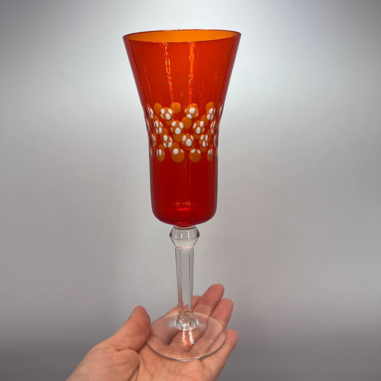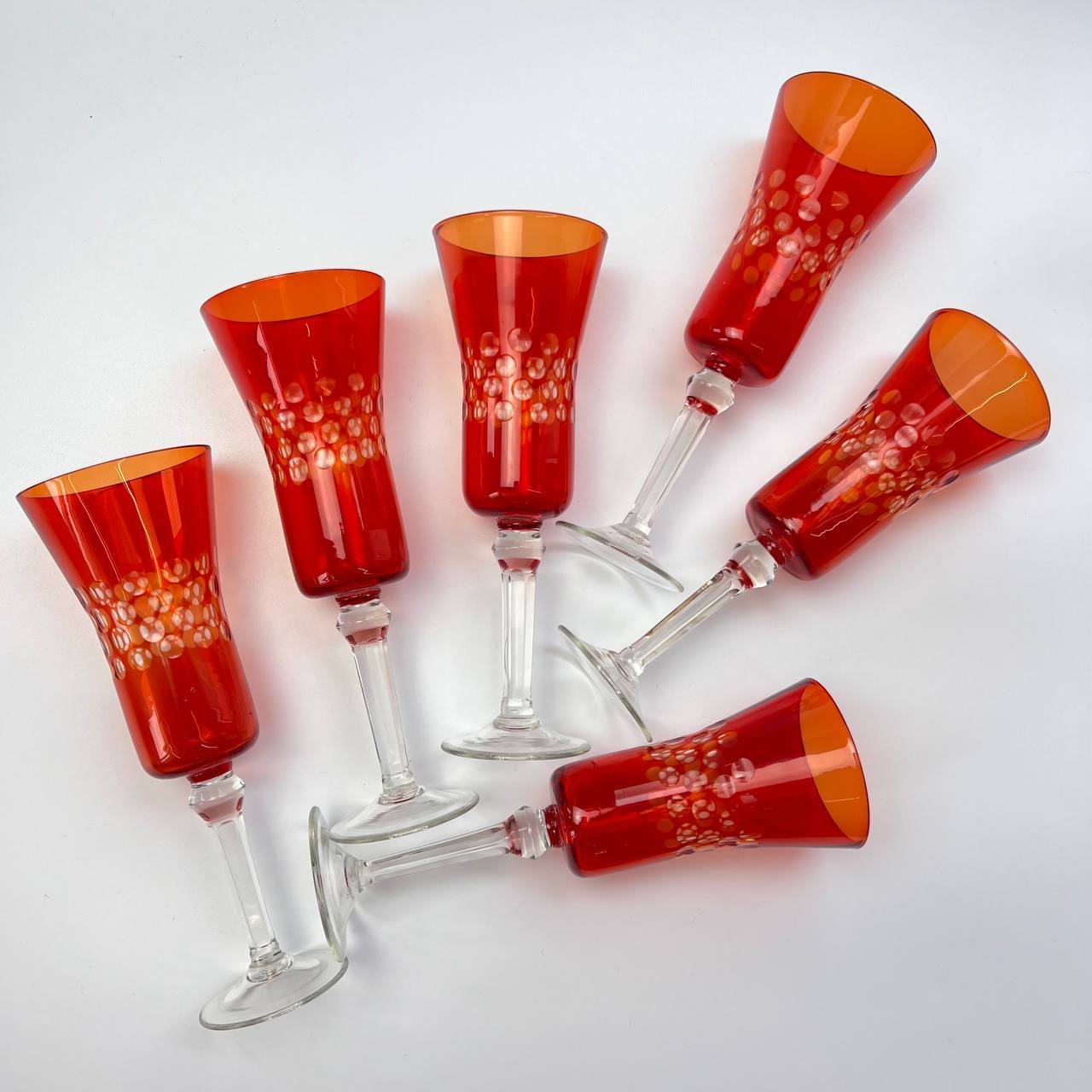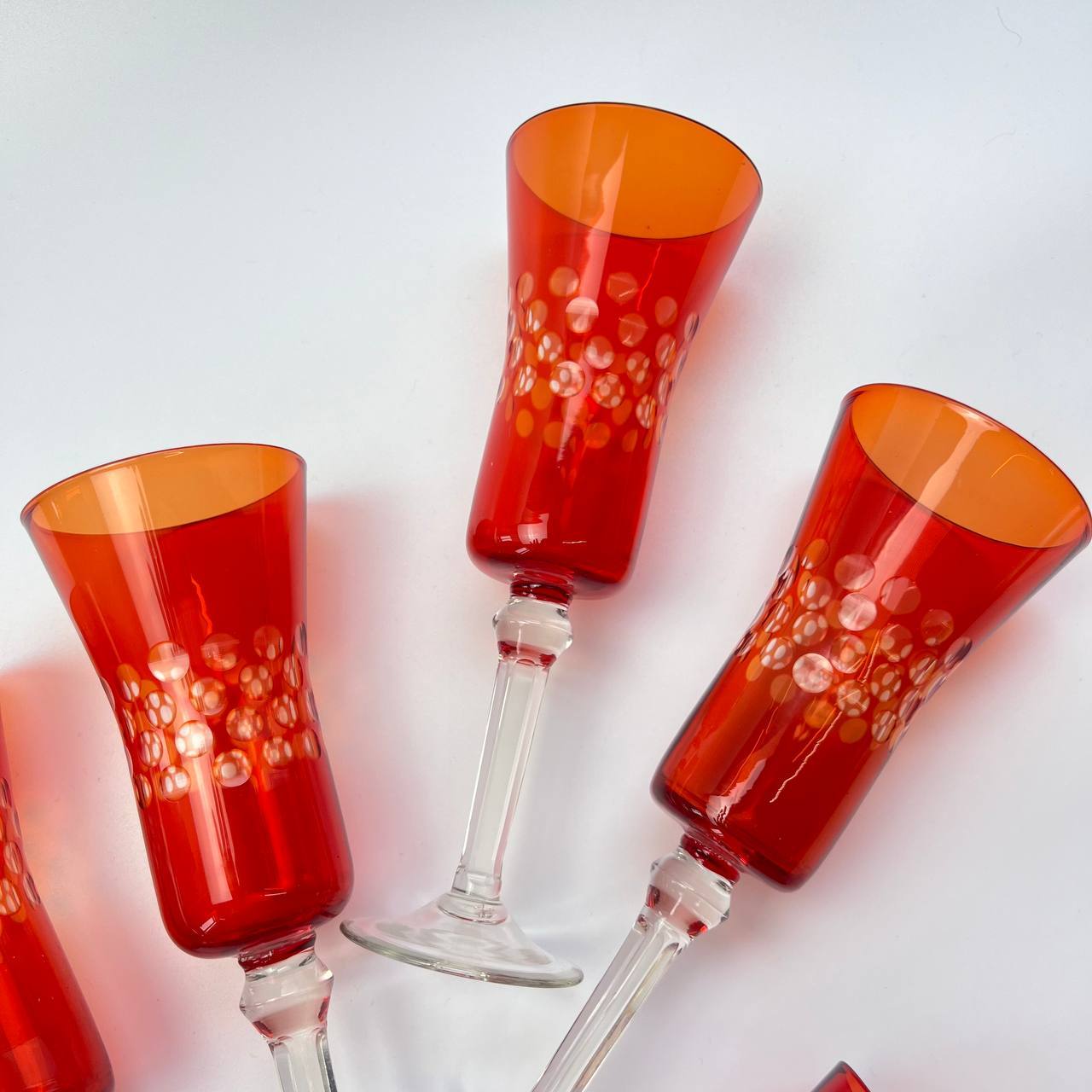 Fine Vintage Set 6 Champagne Goblets Glasses Red Crystal Glass Czechoslovakia