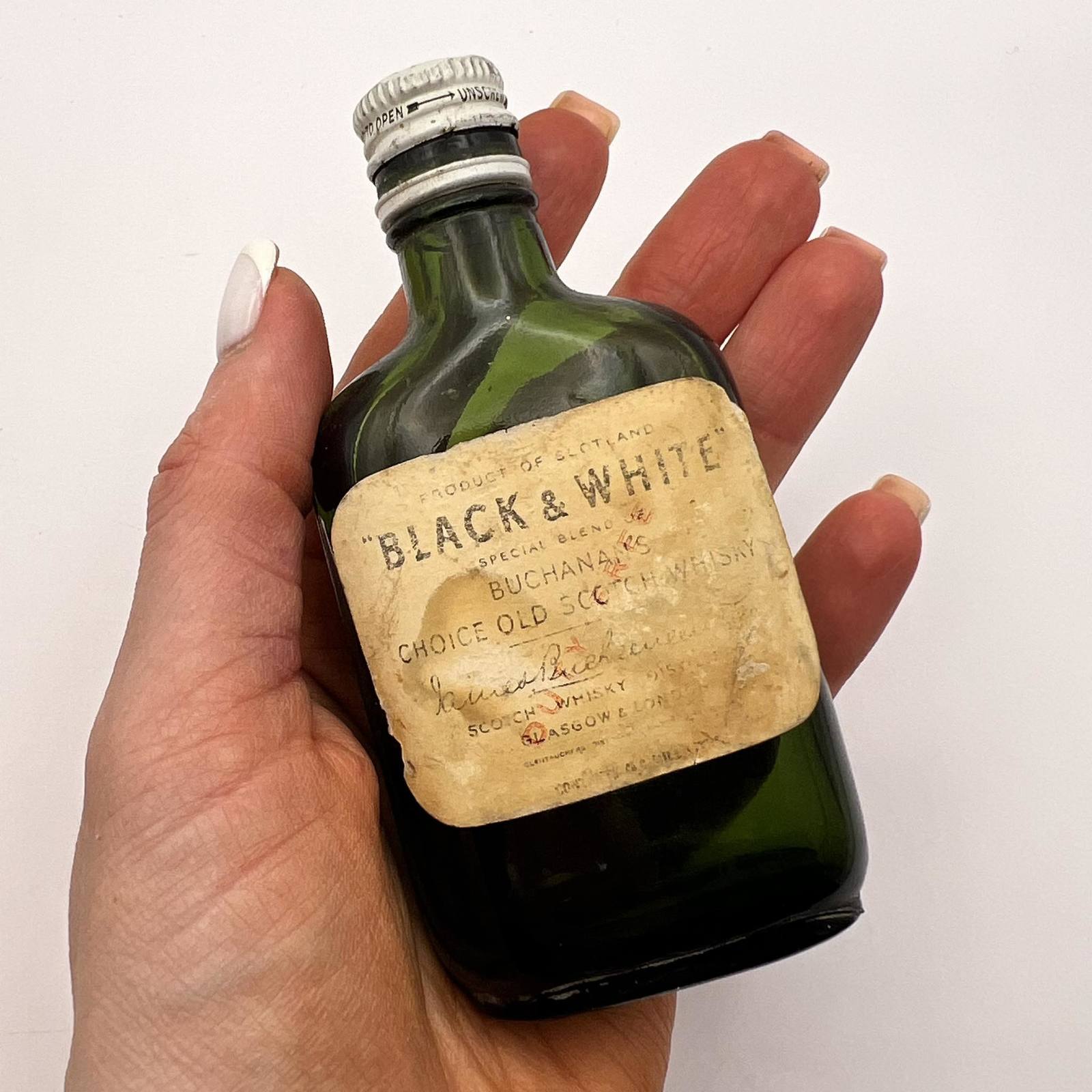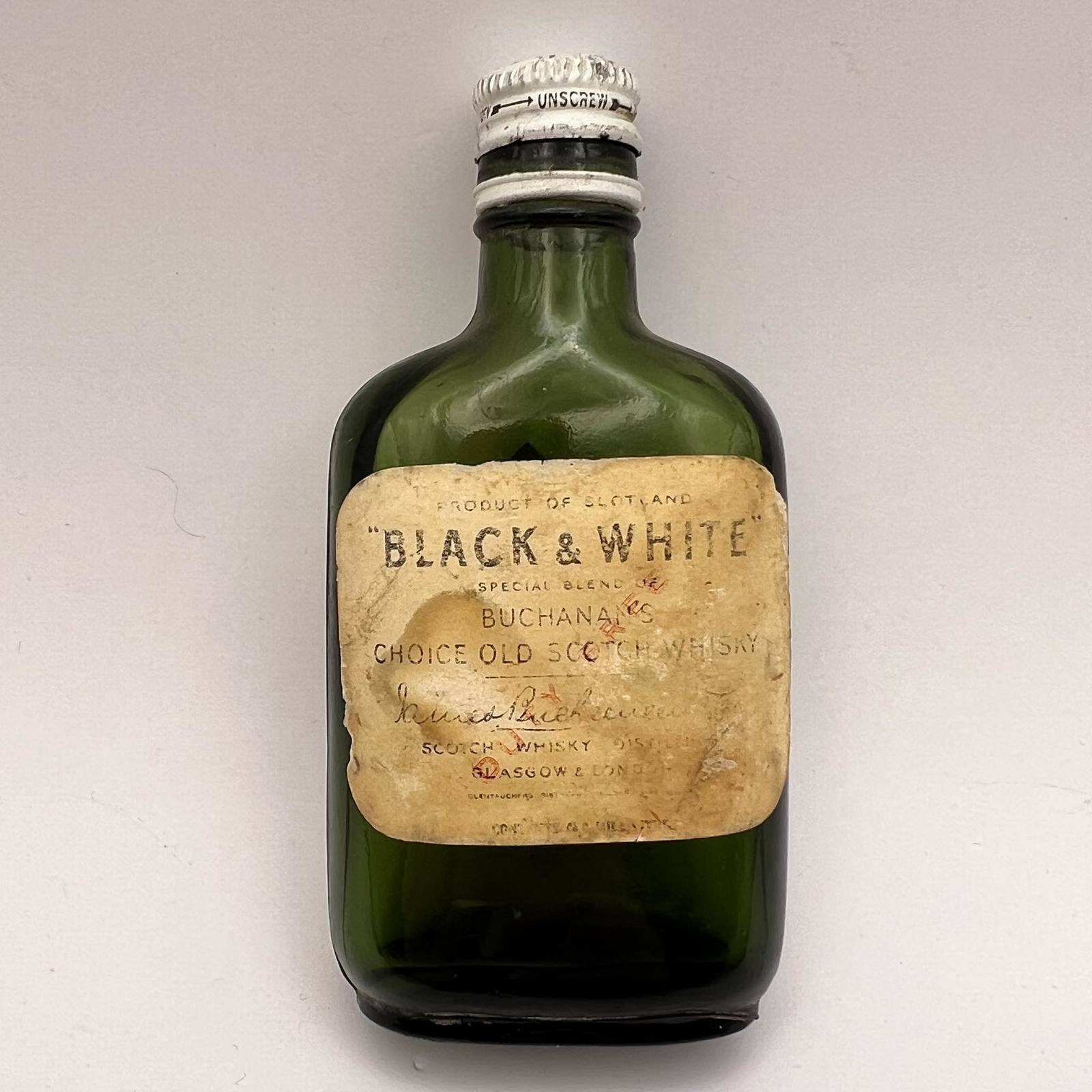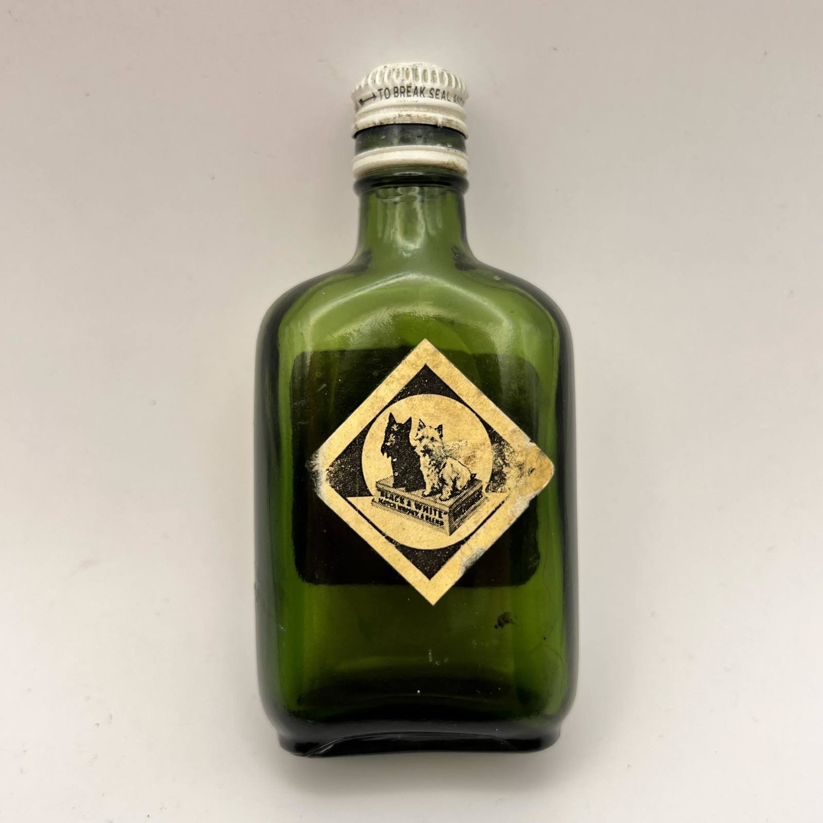 Black & White Vintage Miniature Scotch Whisky Green Glass Bottle Scotland