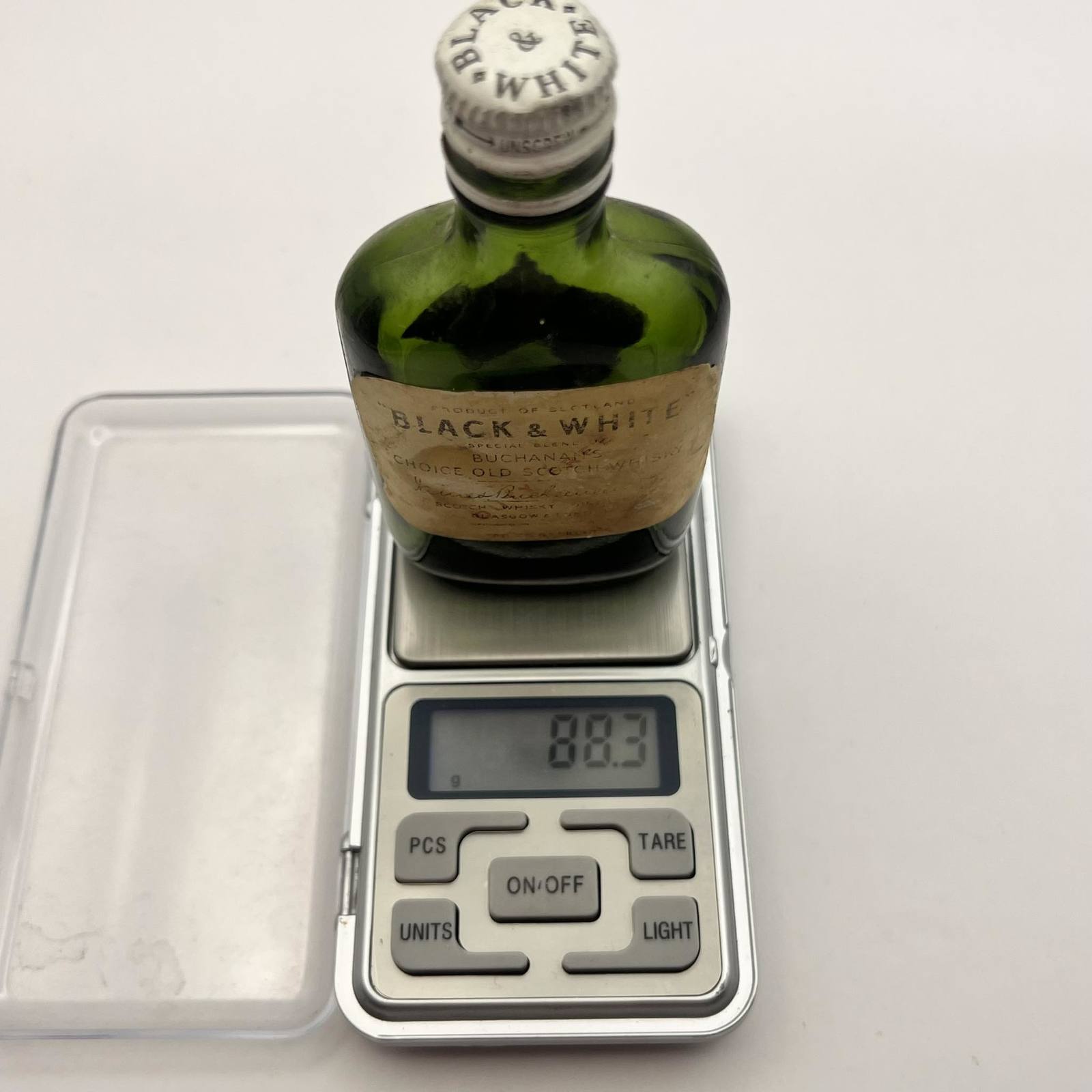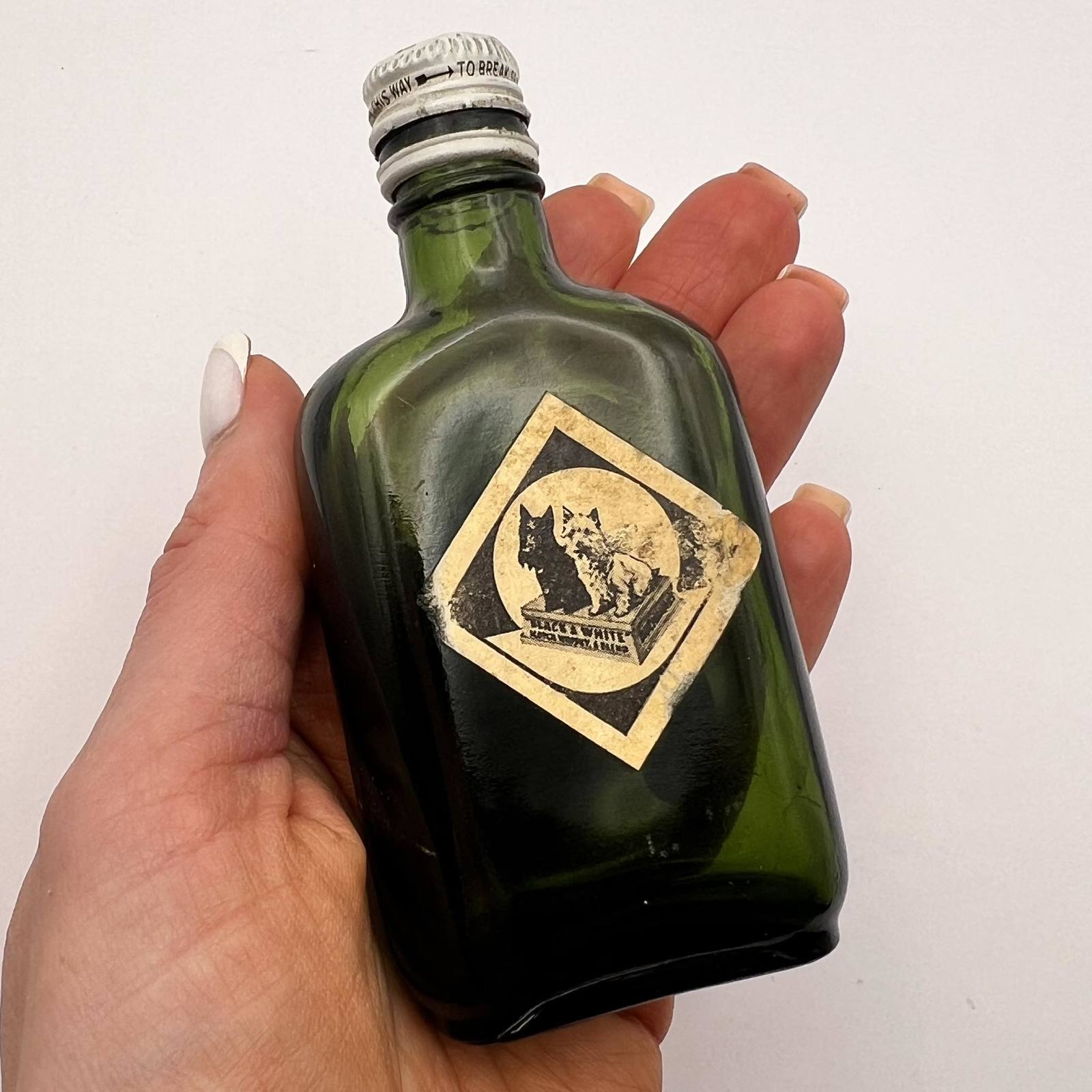 Original Black White Vintage Miniature Scotch Whisky Green Glass Bottle Scotland