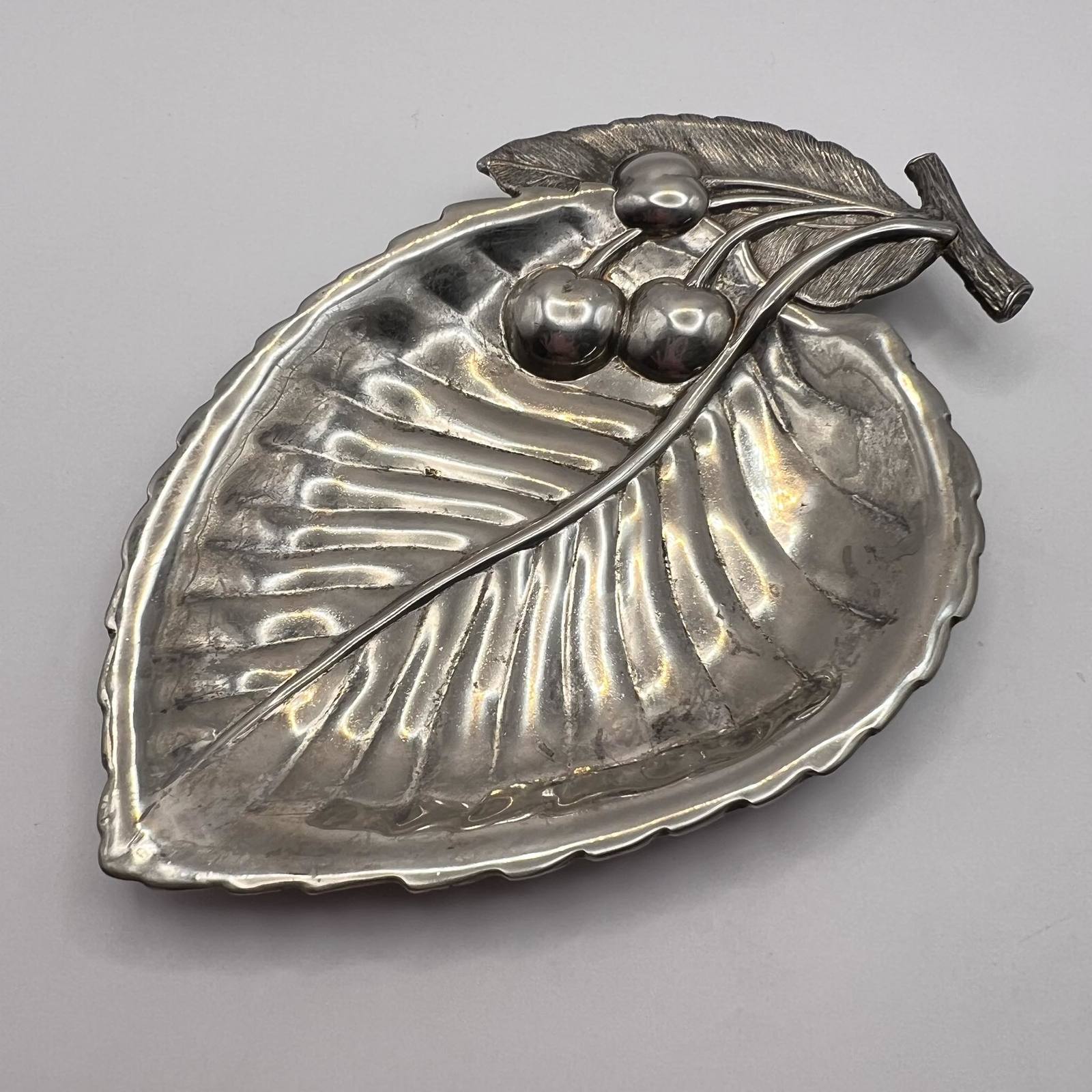 lVintage Art Deco Silver Plated Leaf Small Plate Saucer Ashtray Europe