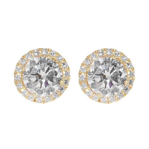 Genuine 14k Yellow Gold 7.75mm Round Cubic Zirconia Halo Women's Stud Earrings