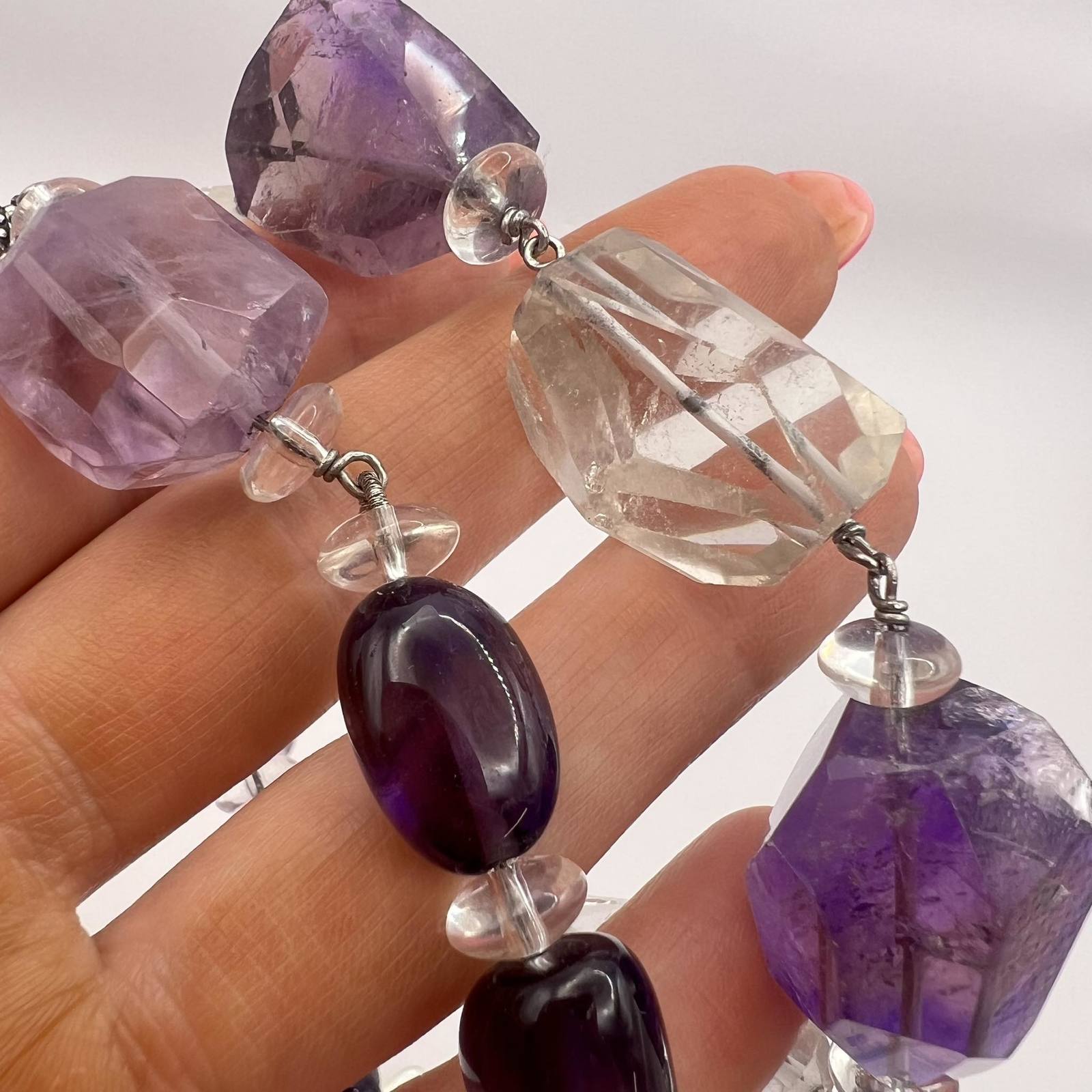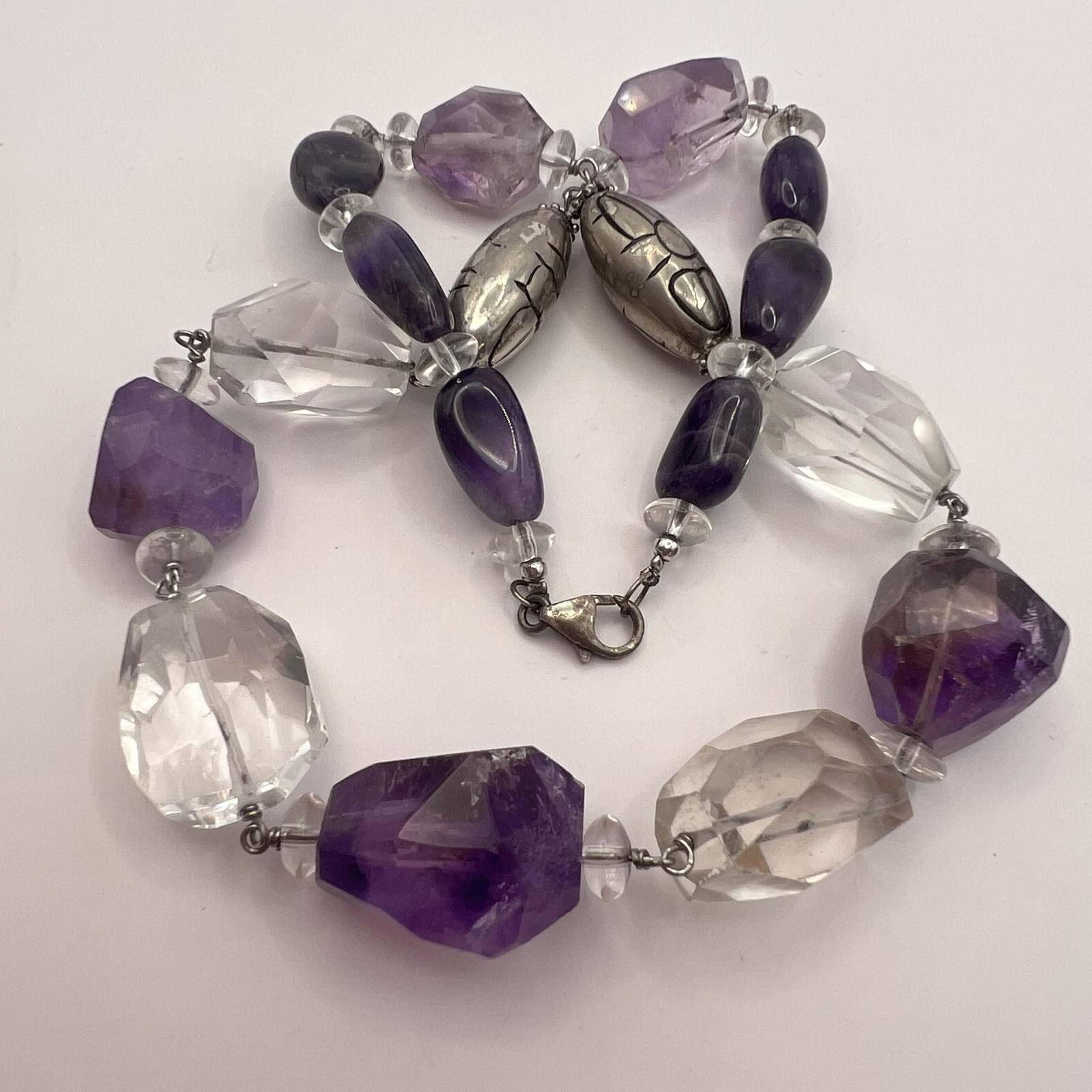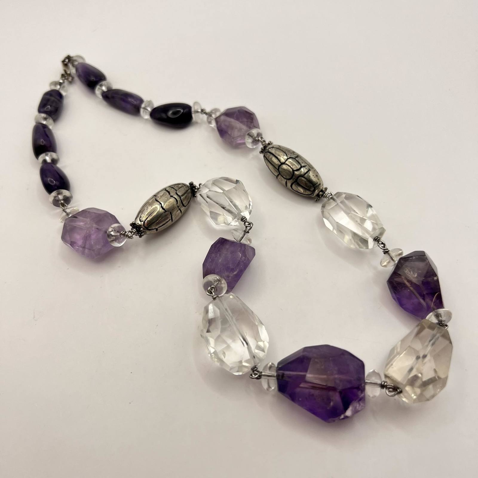 Unusual Vintage Sterling Silver 925 Womens Jewelry Necklace Beads Natural Amethyst