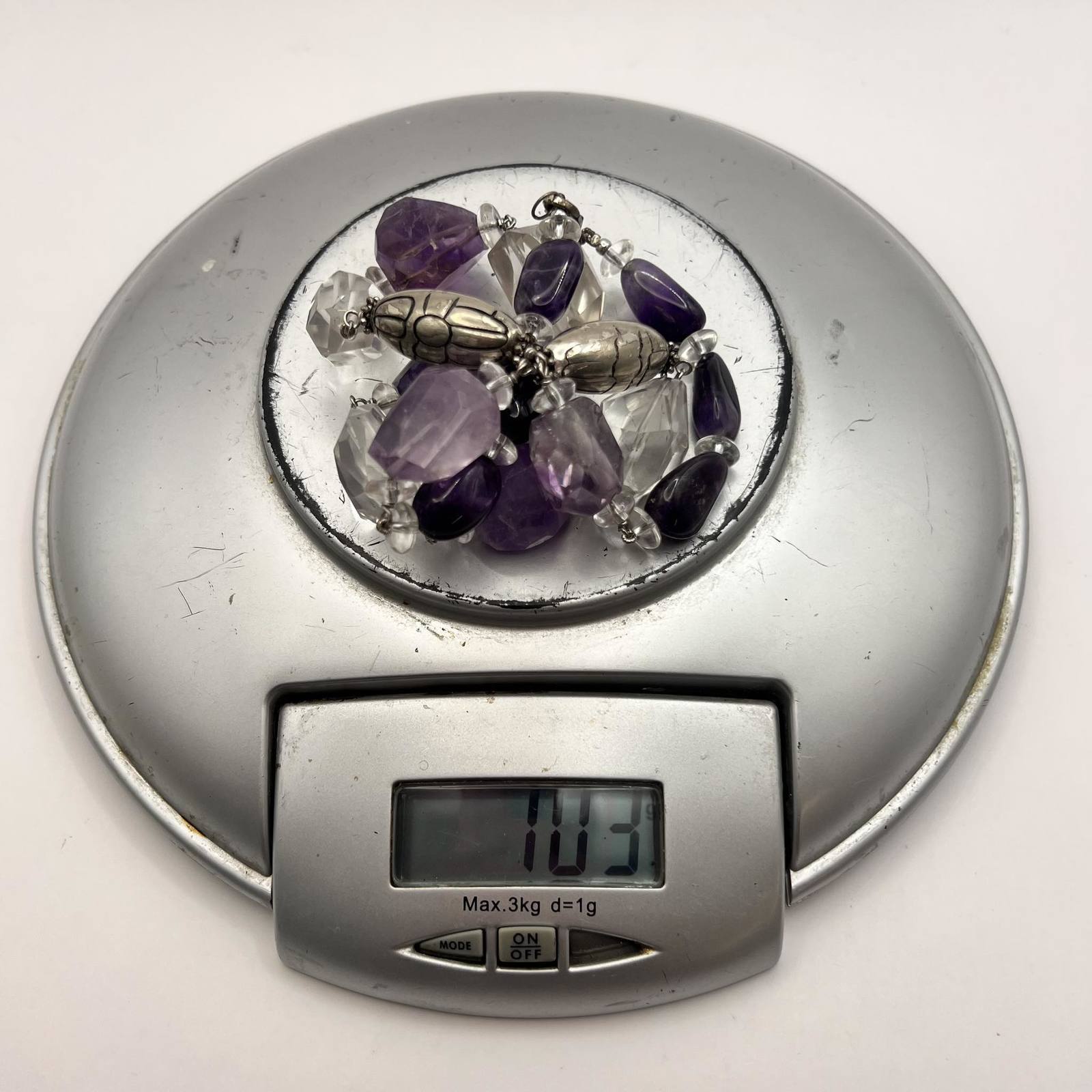 Vintage Sterling Silver 925 Womens Jewelry Necklace Beads Natural Amethyst 104gr