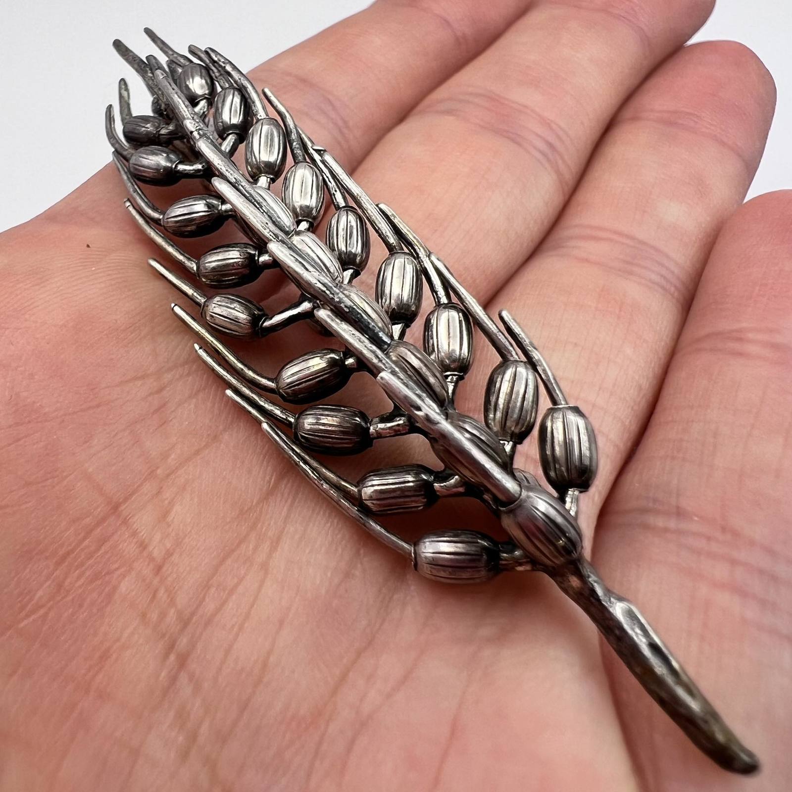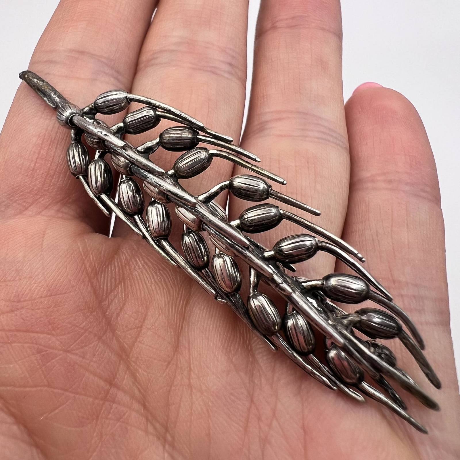 Unusual Vintage Silver Plated Women's Jewelry Pin Brooch Wheatear Made in Italy