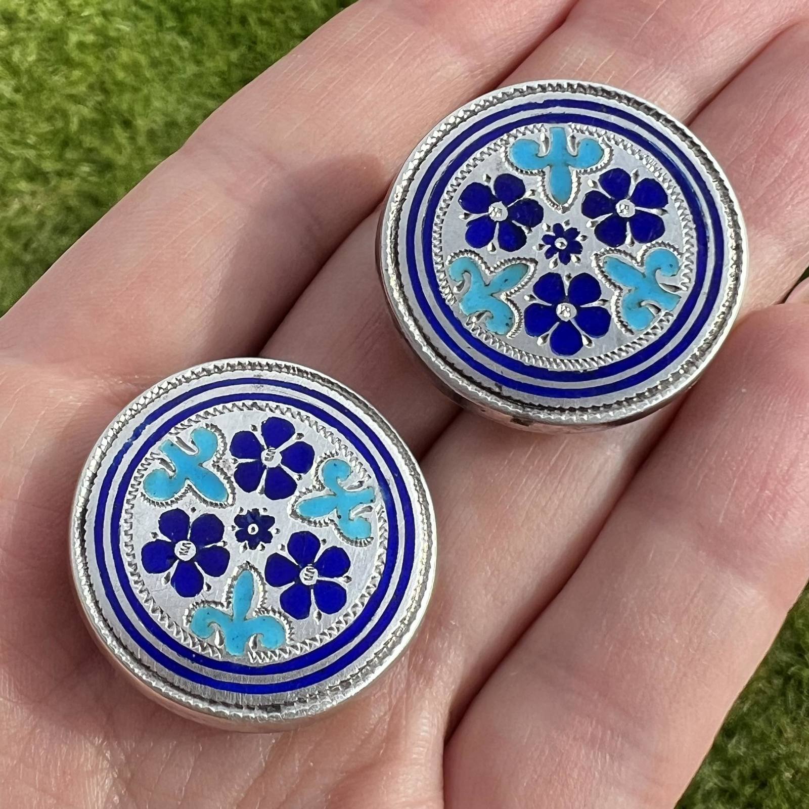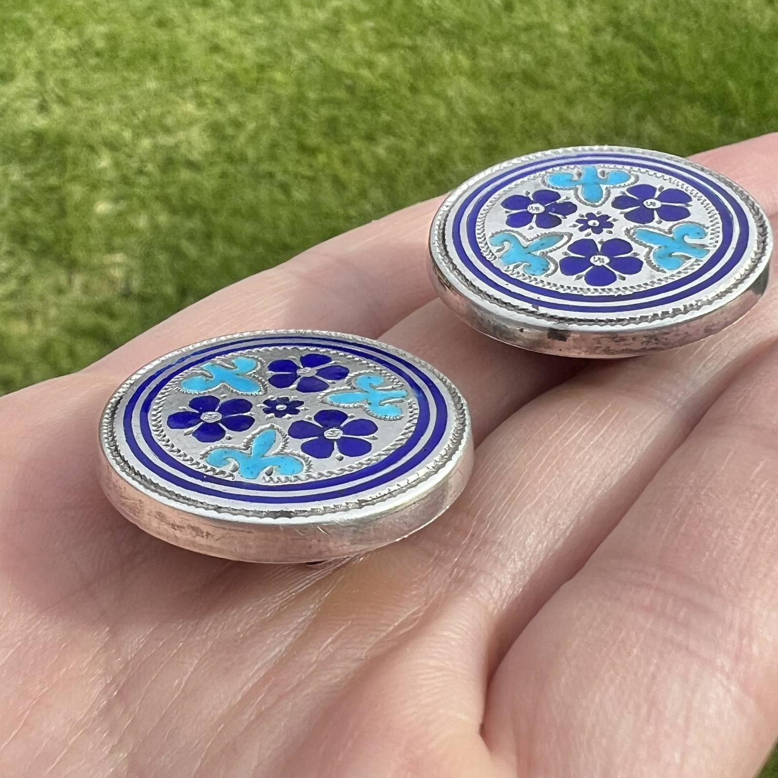 Antique Imperial Silver 84 Blue Hot Enamel Men's Jewelry Cufflinks Marked 12.3gr