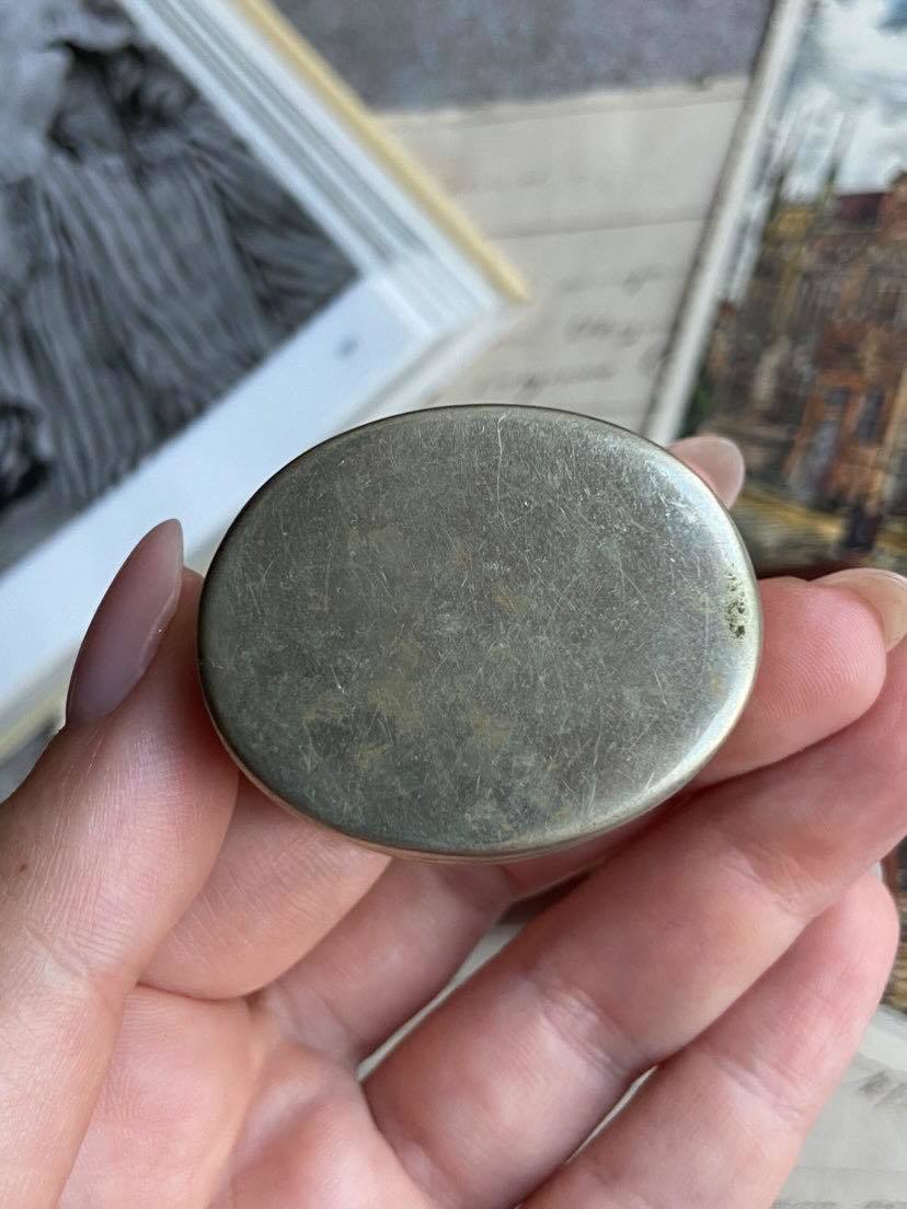 Vintage Miniature Trinket Box Pill Box Mother Of Pearl Hand Painted Portrait Man