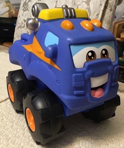 "Let the fun times roll with this soft and squeezable pickup truck that's easy for toddlers to grasp and hold. Press the front bumper and the truck makes beeping and engine sounds! Free-rolling wheels make is easy for toddlers to go cruisin'!"