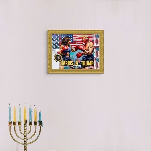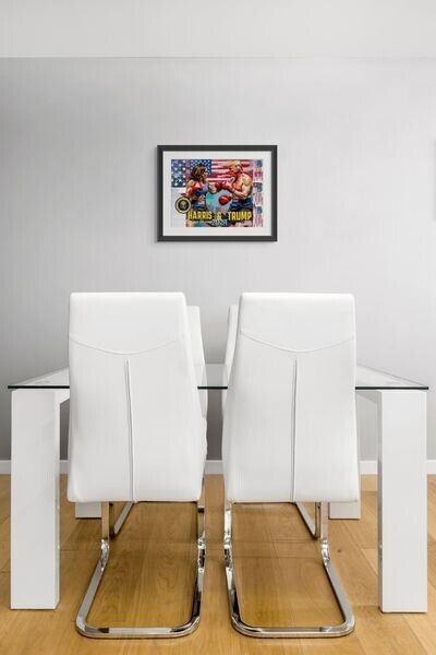 The print measures 15.6 inches in length and 11 inches in height, with a color image of Donald Trump and Kamala Harris. It is perfect for teens, adults, and kids who appreciate pop art and want to add a touch of elegance to their decor. This wall art print is a great addition to any room, with its customized design and originality.