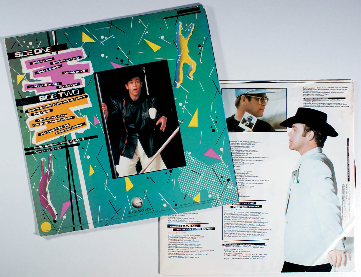 Jump Up!, by Elton John, includes Empty Garden (Hey Hey Johnny), a tribute to John Lennon. This is one of the first few LPs that showcases John singing in a deeper voice, as can be heard in songs such as Blue Eyes, Princess, Ball and Chain and Spiteful Child. Legal Boys was written by John and Tim Rice, who later wrote lyrics for The Lion King and The Road to El Dorado. In the United States, it was certified gold by the RIAA in November 1982. Empty Garden (Hey Hey Johnny) and Blue Eyes were released as singles and reached the Top 20 on the US Hot 100 and A/C charts, with Blues Eyes topping the A/C chart.