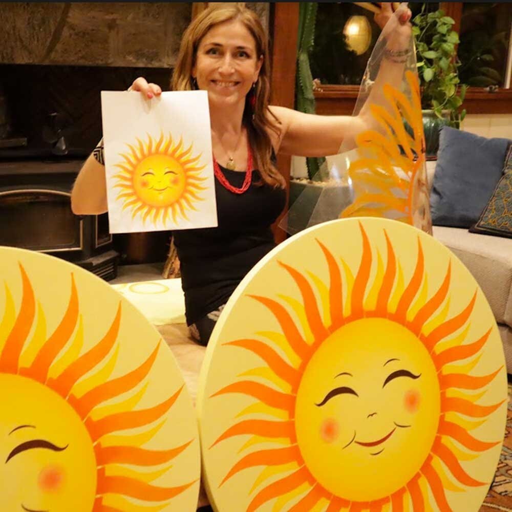 Smiling Sun Wall Art Stencil - Customizable and Reusable Large Wall Stencil - Be