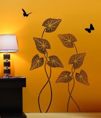 Large, dramatic and beautiful leaf stencil Tropical Plant for easy wall decor. Check out the detailed veining on leaves! This large foliage stencil makes a stunning accent on an empty wall next to the sofa or table, in the bath or pretty much any wall space that needs some color boost. Trendy and hip, these bold refreshingly modern wall art stencils will instantly bring color to a otherwise plain wall, ceiling or floor.