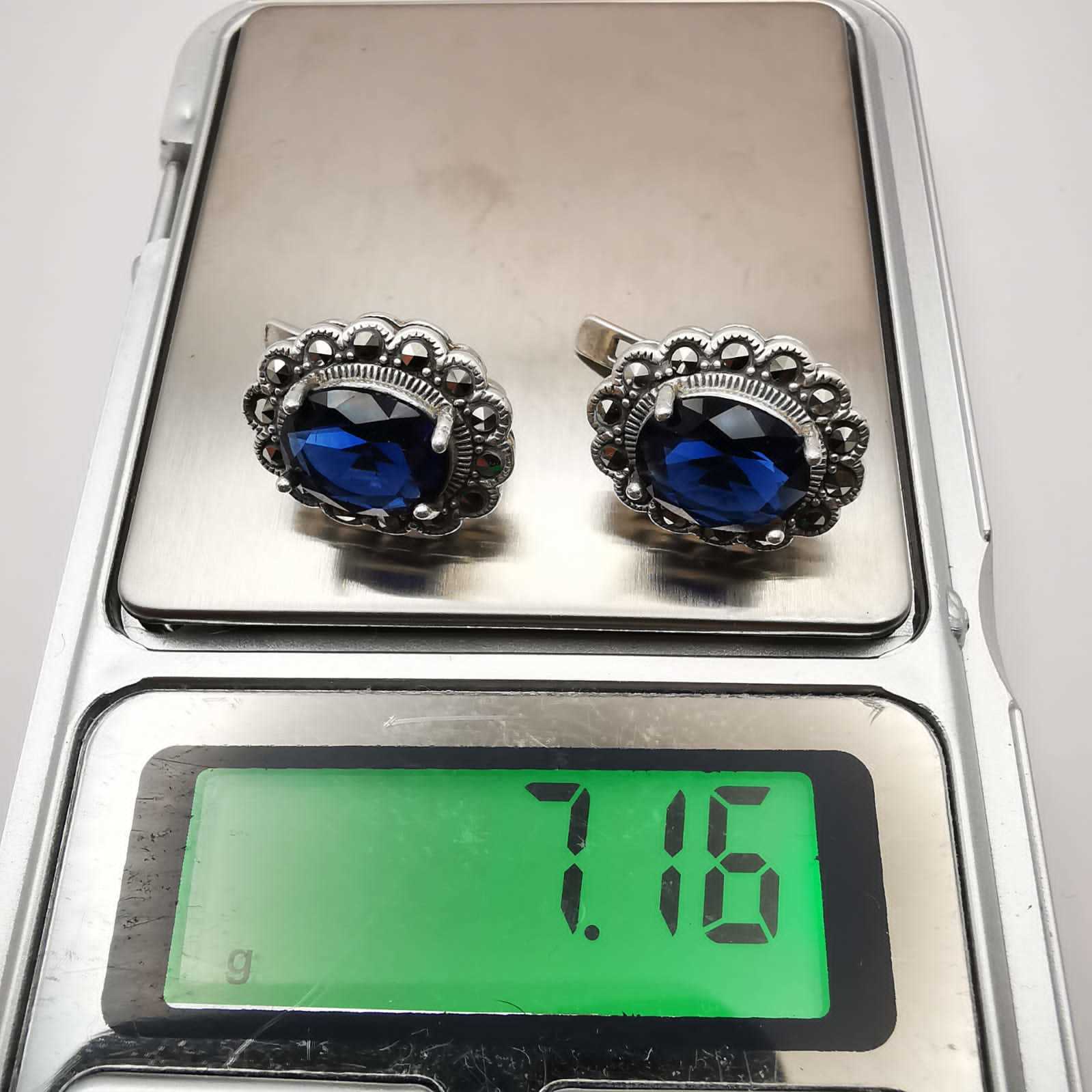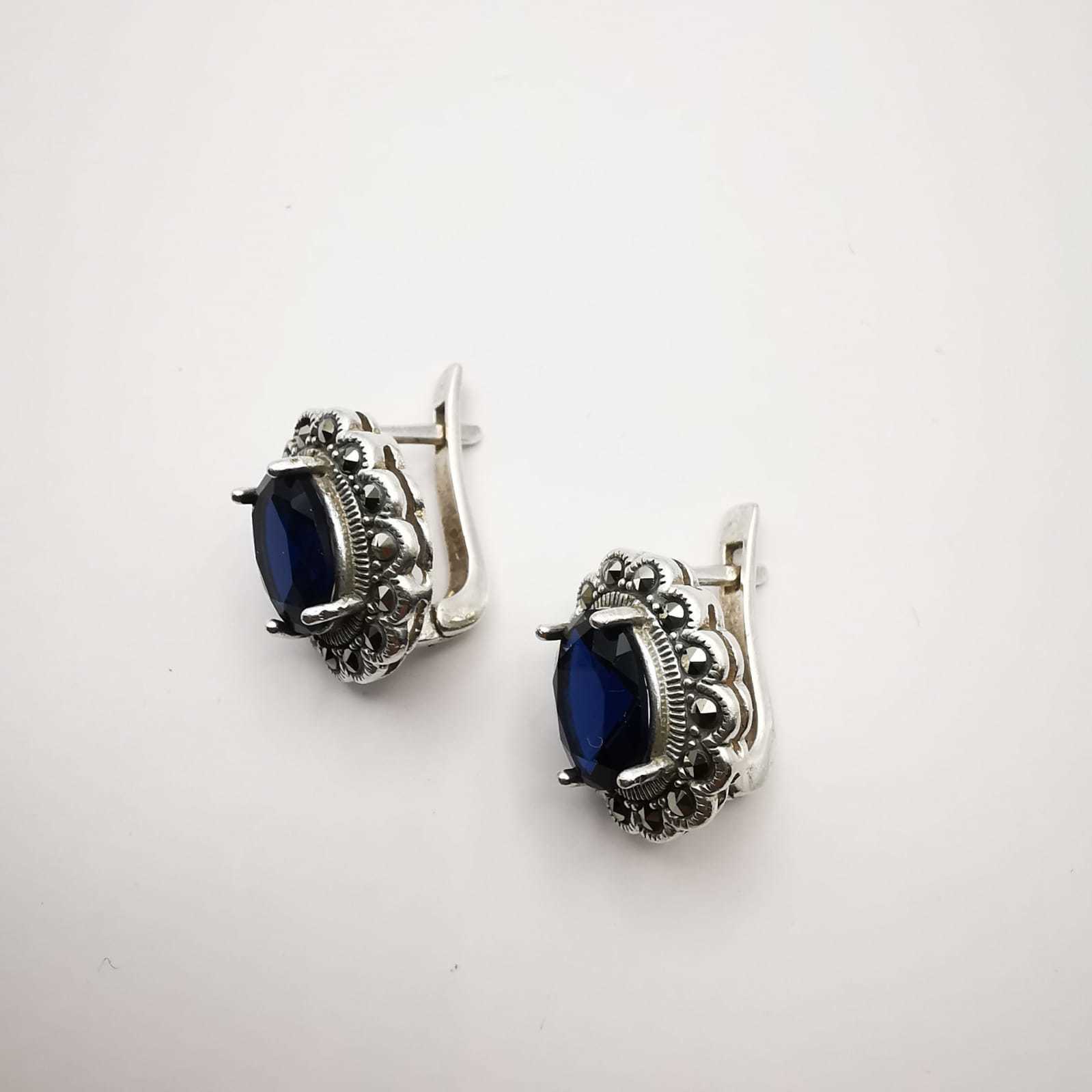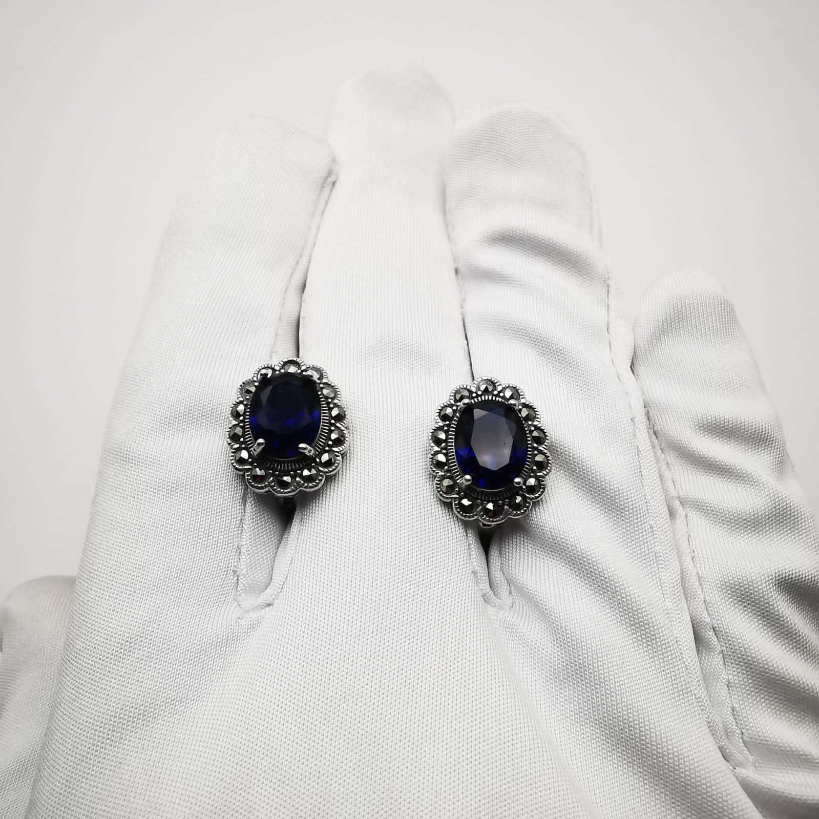 Vintage Jewelry"Night Sea" Women's Earrings,925 Sterling Silver,Zircon,Marcasite