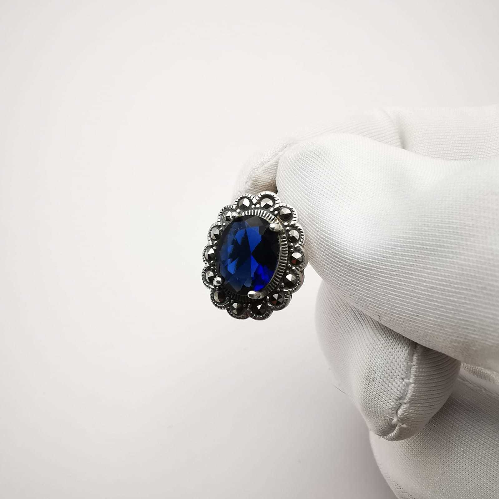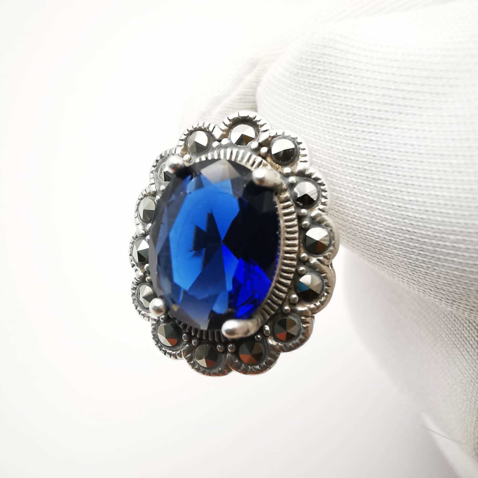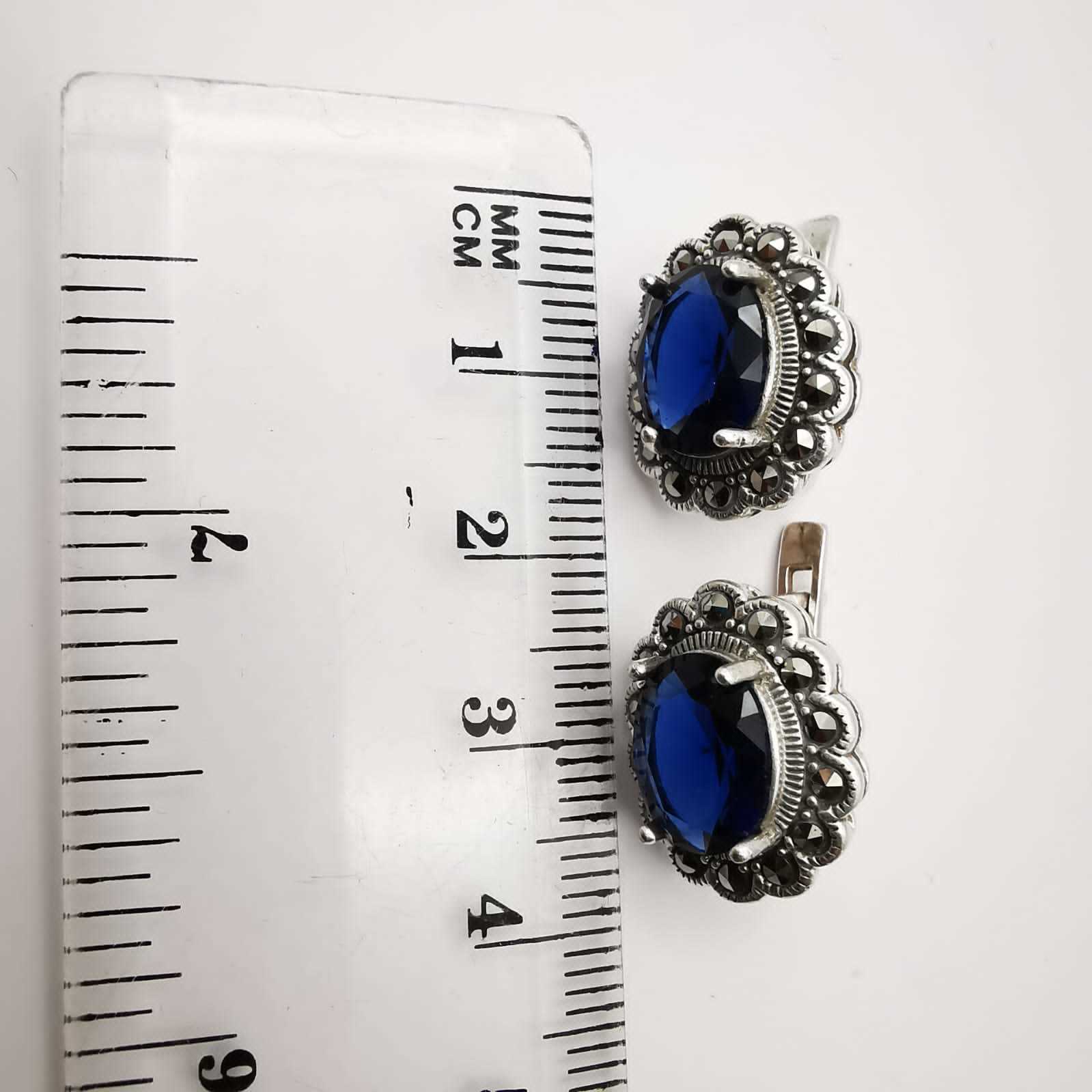 Vintage Jewelry"Night Sea" Women's Earrings,925 Sterling Silver,Zircon,Marcasite