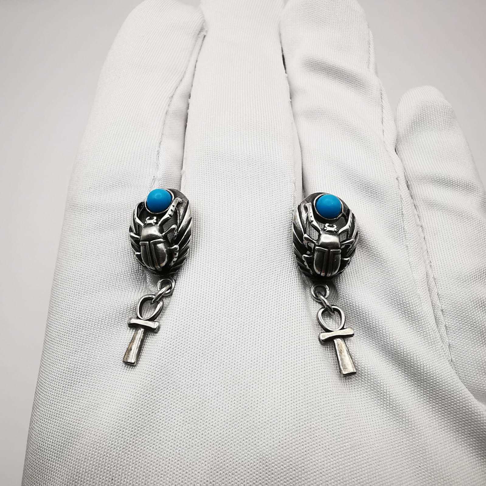 Vintage Jewelry "Scarab" Graceful Women's Earrings, 925 Sterling Silver