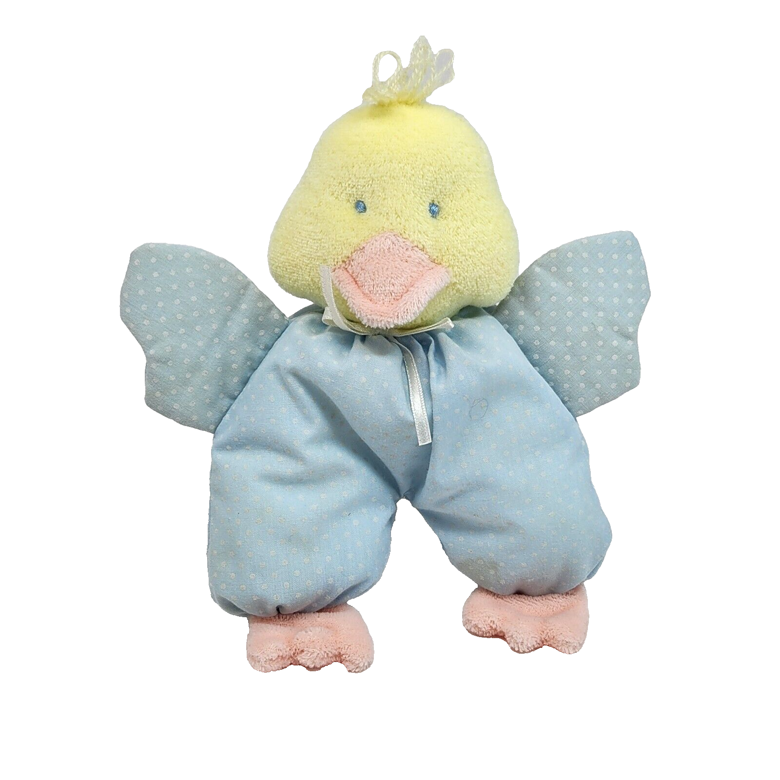 7" VINTAGE EDEN BABY YELLOW DUCKBLUE OUTFIT RATTLE STUFFED ANIMAL PLUSH TOY