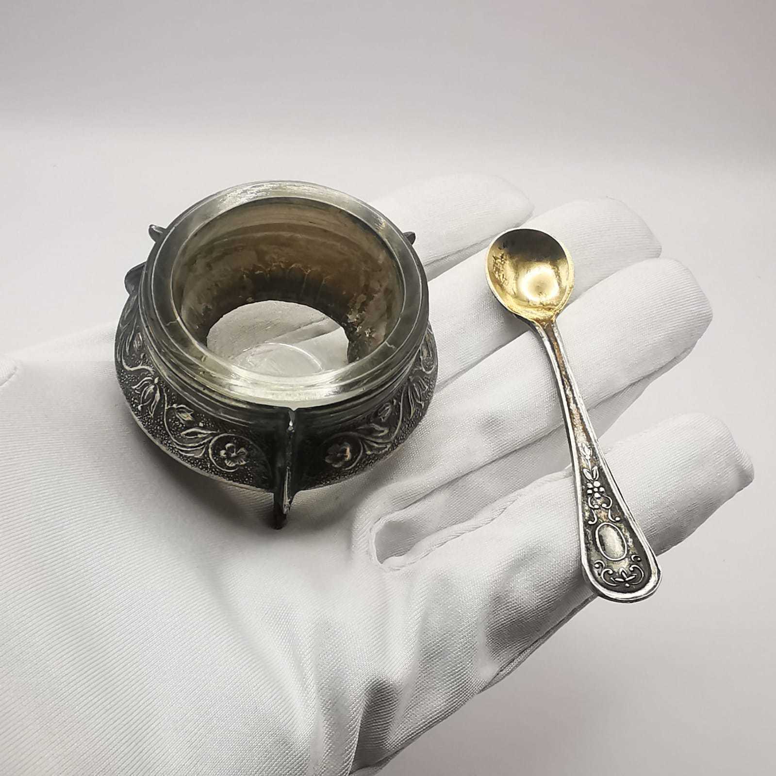 USSR Vintage Saltcellar from Silver Cupronickel and Glass Handmade 67g