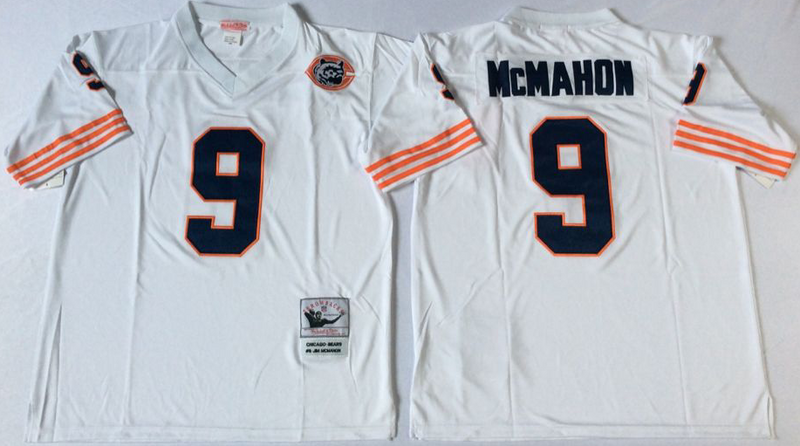 Men's Jim McMahon #9 Stitched Jersey White Navy With Patch