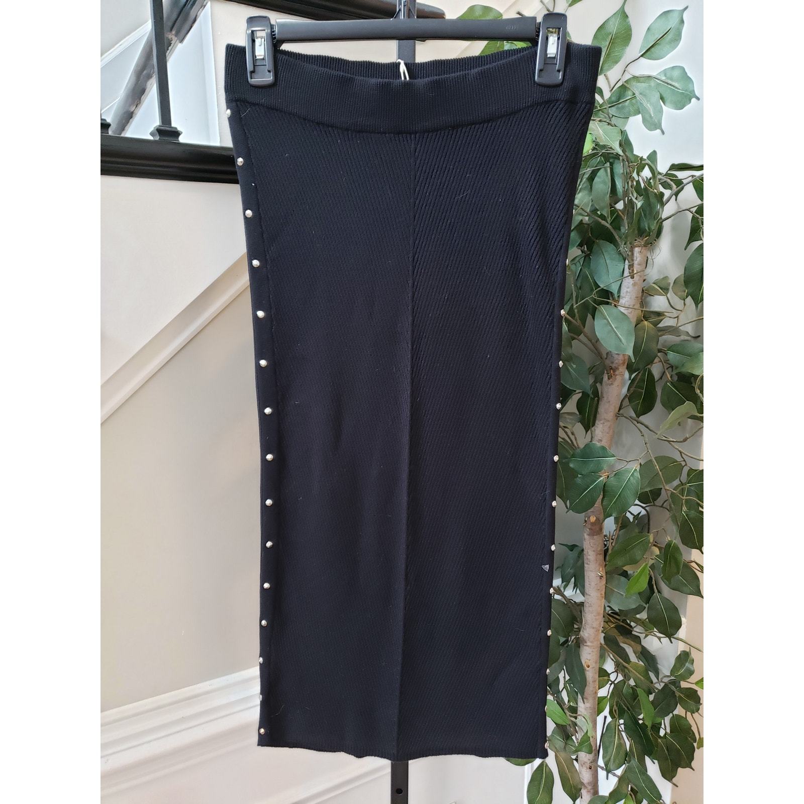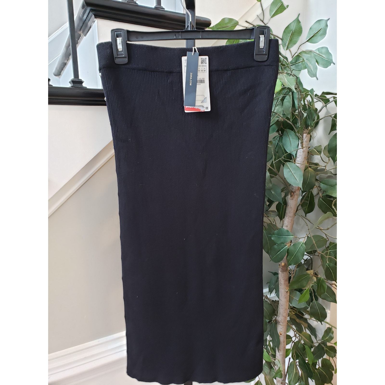 Zara Straight & Pencil Skrit Women's Medium Black Striped Knit Viscose Pull On